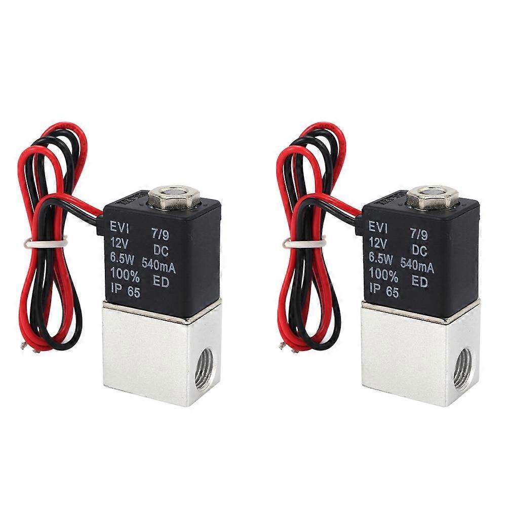 2X DC12V Solenoid Valve 1/4 Inch 2 Way Normally Closed Direct-Acting Pneumatic Valves for Water Air Gas
