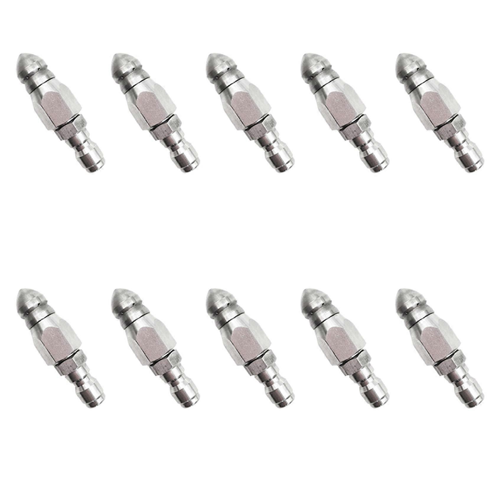 10X Pressure Washer Sewer Jetter Nozzle with Stainless Steel, Durable Design Sewer Jet Nozzle,1/4Inch Quickly Connector