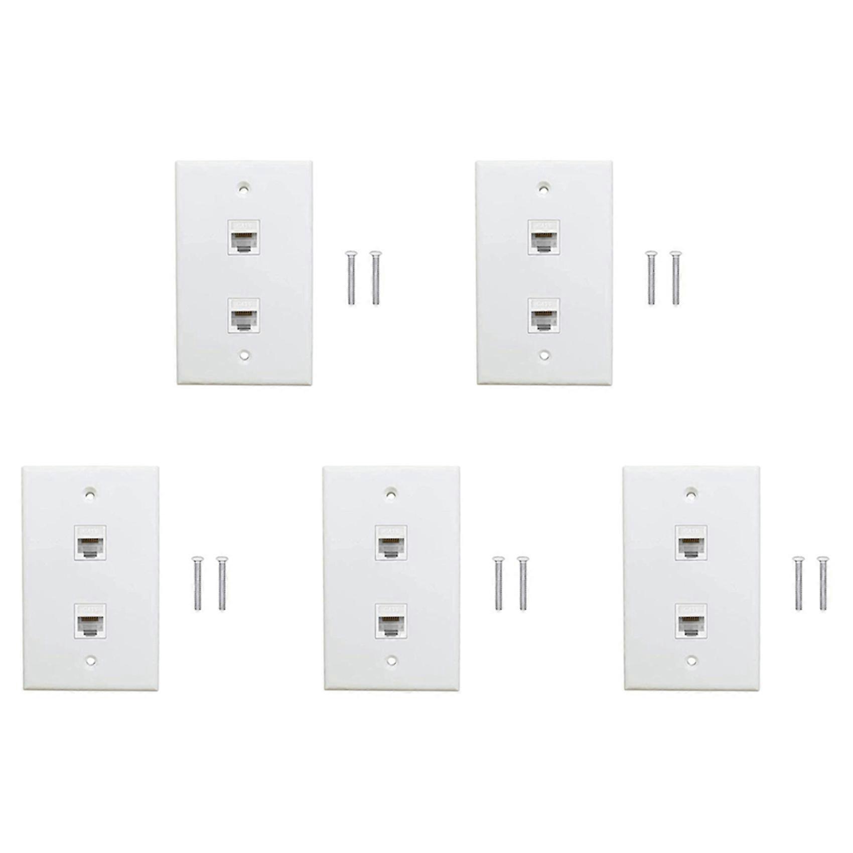 5 Pack 2 Port Ethernet Wall Plate, Cat6 Female to Female Wall Jack RJ45 Keystone Inline Coupler Wall Outlet, White