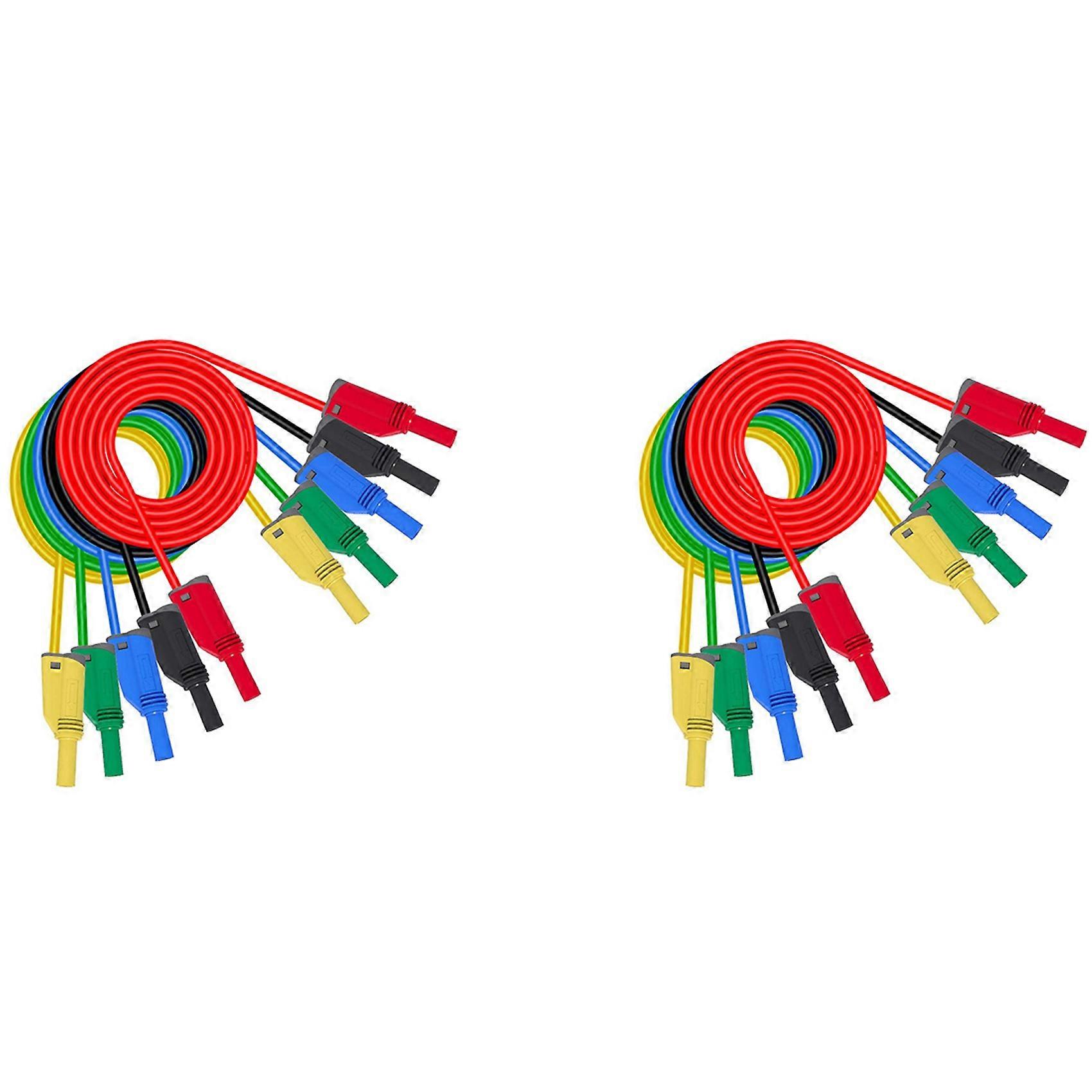 10PC Banana Plug Silicone Test Leads 4mm Fully Insulated Safety Shrouded Stackable Banana Plug Soft Wire Extension Cable