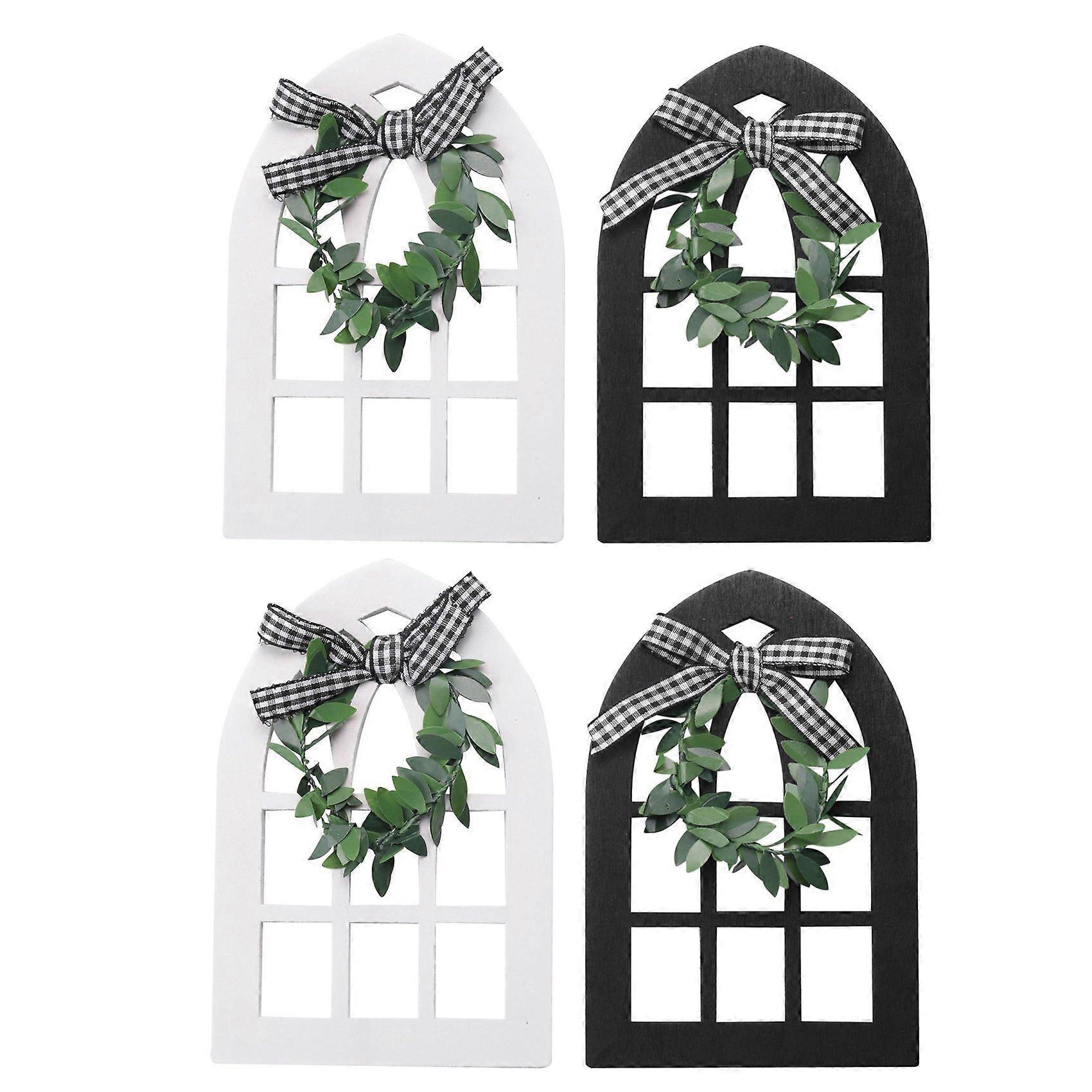 4Pcs Wooden Farmhouse Window Tiered Tray Decoration Plaid Rustic Farmhouse Decor Cathedral Arch Window Shelf Photo Prop