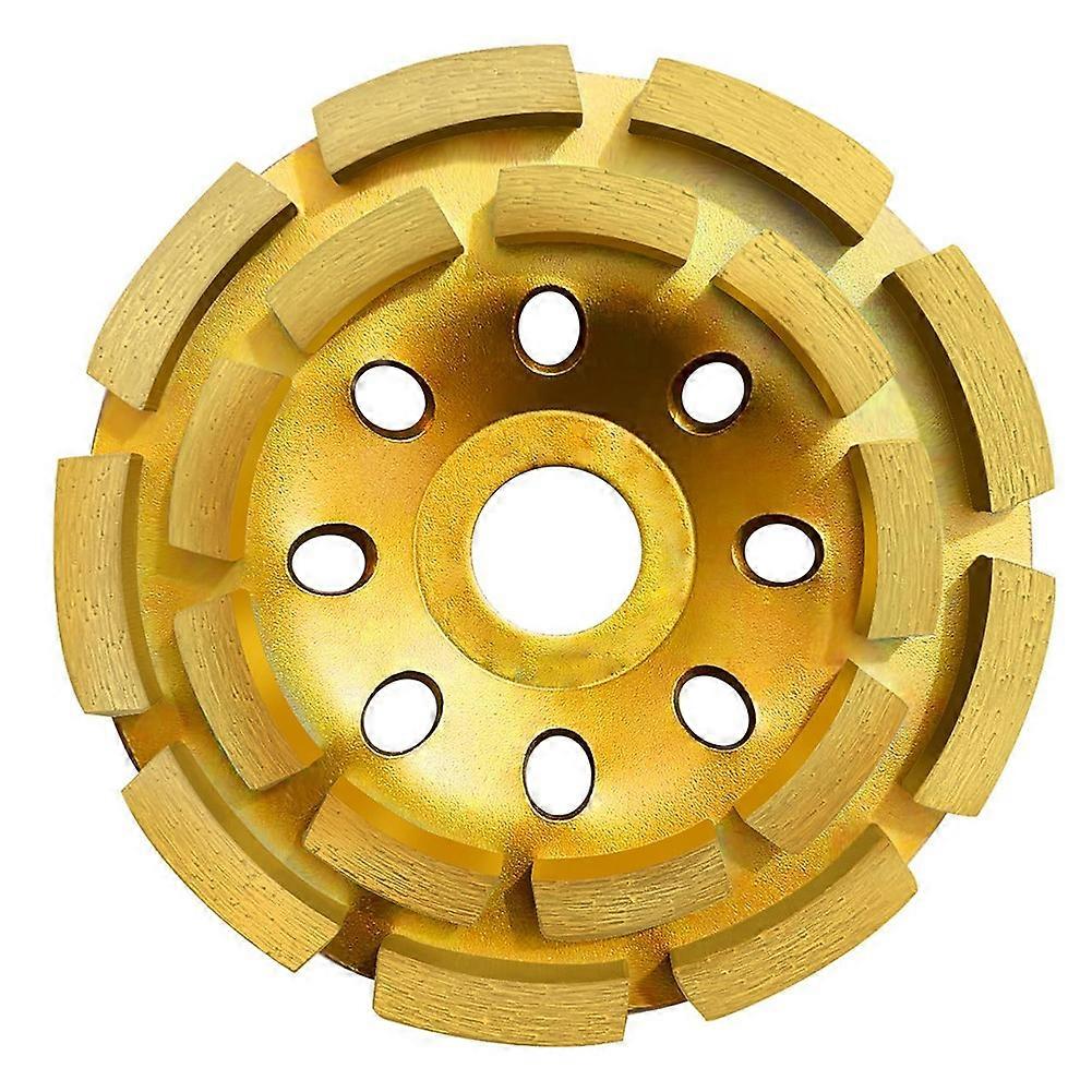 Technology upgrade: military-grade 1500°C high-temperature triple quenching and sintering process, high-purity diamond is more closely integrated with the matrix, and the service life is extended by 300% Product design: high-purity 18 diamond teeth, double-row staggered cutter heads, friction coefficient as low as 0.15, grinding efficiency increased by 50%; Eight cooling holes are self-dissipating and clogging, and the debris diameter is only 2.5 microns, reducing the risk of friction and overheating Product size:concrete grinder wheel 4.5 Mandrel 7/8inch with 5/8inch and 4/5inch reducer washers. More stable operation at high speed (13,300 rpm supported) Widely compatible: wet/dry, compatible with 4.5inch angle grinder, suitable for concrete, marble, masonry grinding, glue and epoxy resin Safety: Heat-treated steel structure, the tool section and the substrate are more firmly combined to ensure the safety of high-speed operation Color: Gold Material: Diamond + Metal Package Contents: 1 x concrete grinding wheel