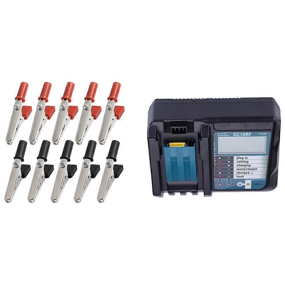 10A Handle Electrical Crocodile Alligator Clips & 14.4V 18V Li-Ion Battery Charger for Makita Dc18Rf (Us Plug)