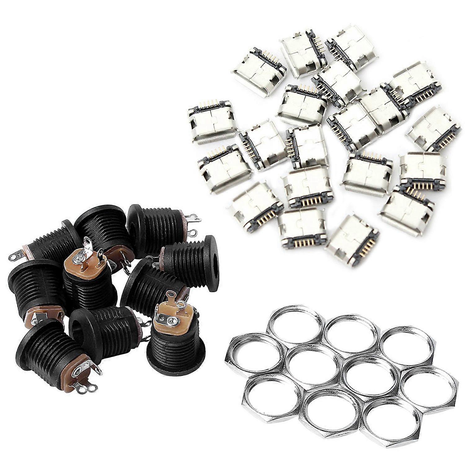 10 Pcs Panel Mount 2.1X5.5Mm Dc Socket & 60Pcs Micro-Usb Type B Female 5 Pin Smt Placement Smd Dip Socket Connector