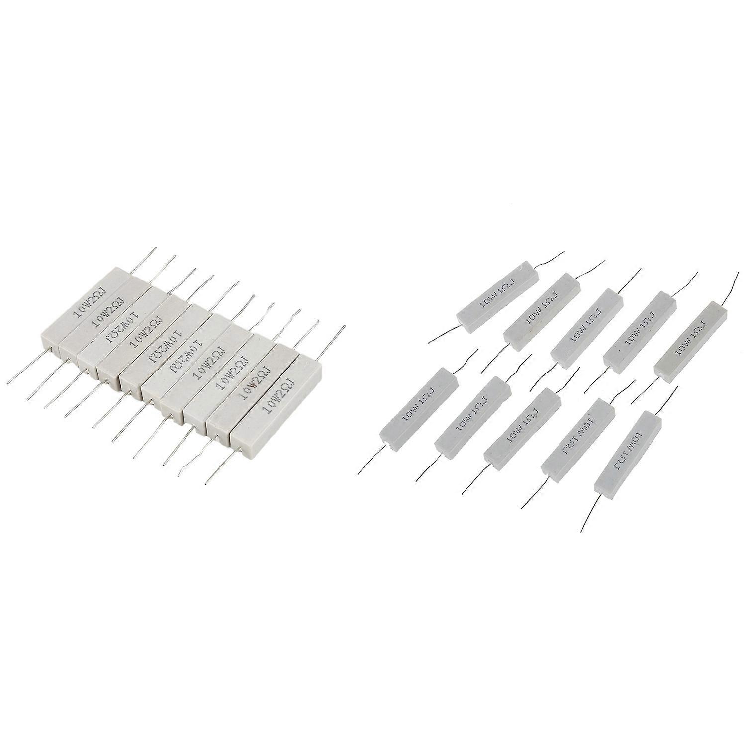 10 Pcs Wire Wound Ceramic Cement Resistor 2 Ohm 10W Watt & 10 Pcs Wirewound Ceramic Cement Resistor 1 Ohm 5% 10W Watt