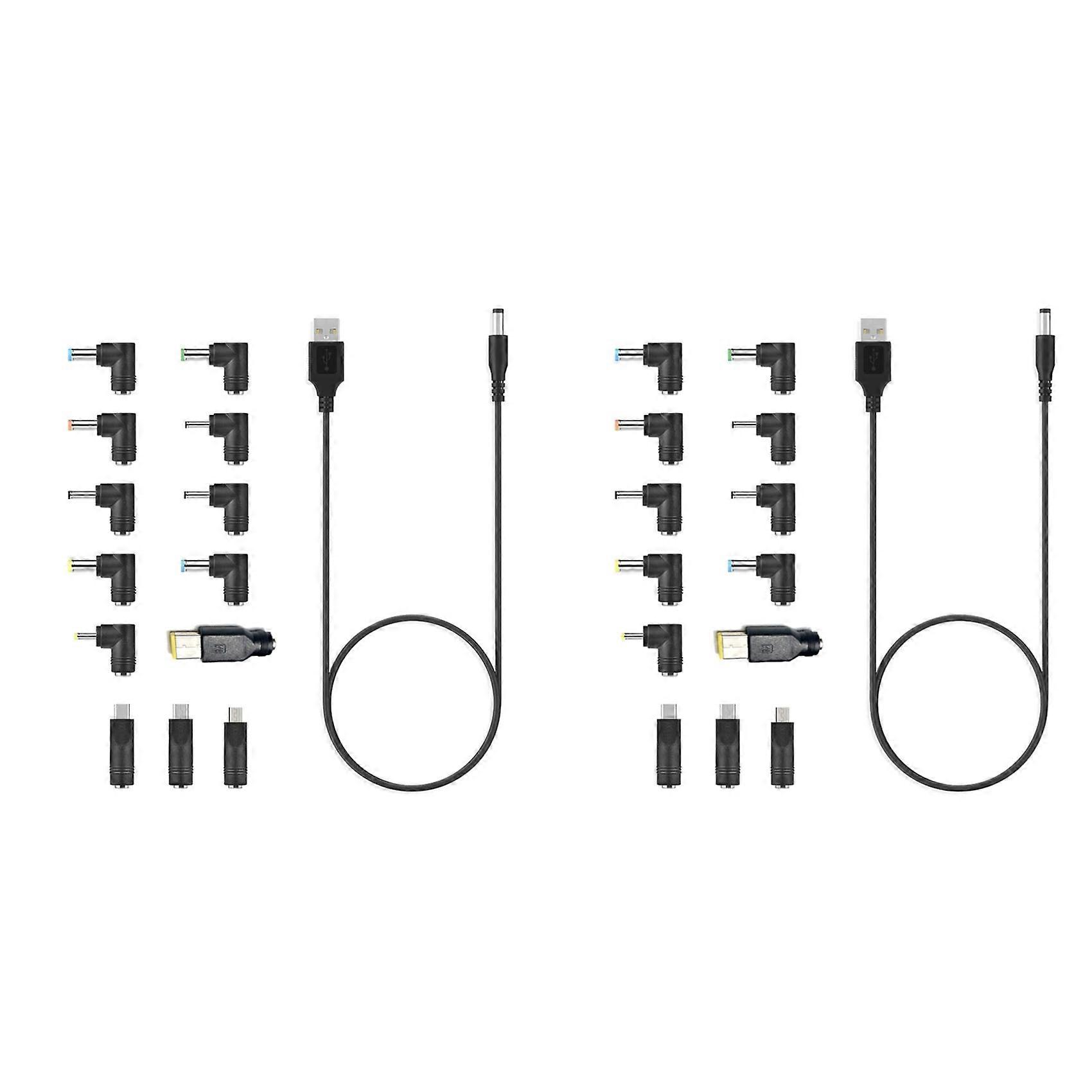 2X USB to DC Power Cable Universal USB to DC Jack Charging Cable Power Cord with 26 Interchangeable Plug Connectors