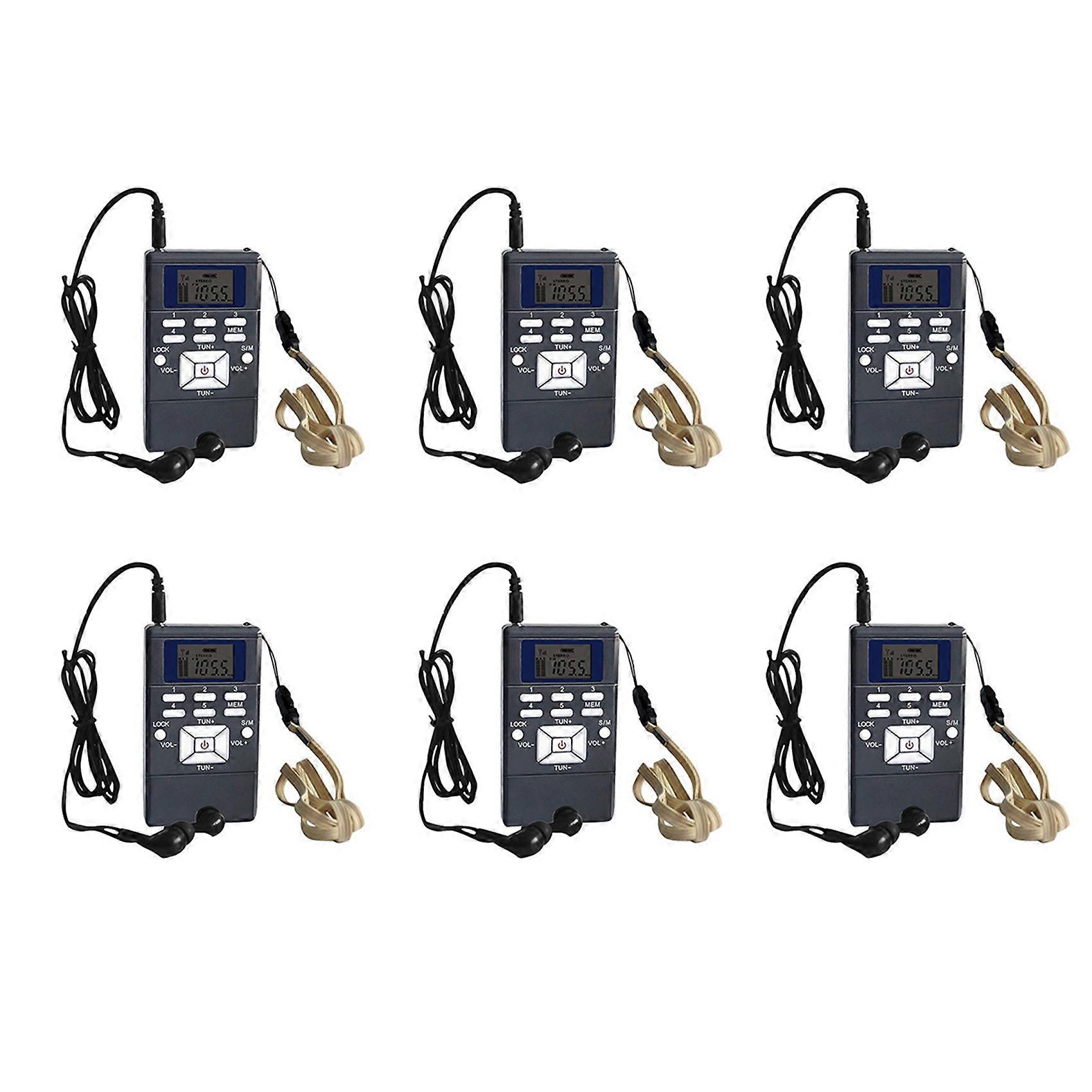 Advanced Digital Sound Processing: Equipped with cutting-edge DSP technology, this Mini FM Radio offers crystal-clear audio reception and stability during your meetings or simultaneous interpretations. Integrated Digital Clock: Stay on schedule with the built-in digital clock feature, ensuring you never miss important timed sections of any event. Convenient Clip-on Design: Designed for ease of use with a clip-on feature that allows you to attach the radio discreetly to your clothing, making it perfect professional environments. Includes Earphone and Lanyard: Comes with a high-quality earphone for private listening and a lanyard for secure, hands-free carrying anywhere you go. Perfect for Professional Use: perfect events where simultaneous interpretation is needed, such as conferences, churches, or international meetings. Due to different batches, there may be differences in product appearance and printed text, which will not affect use Colour:Silver Gray Material:ABS Package Contents: 6 x Radio 6 x Earbuds 6 x Hanging rope