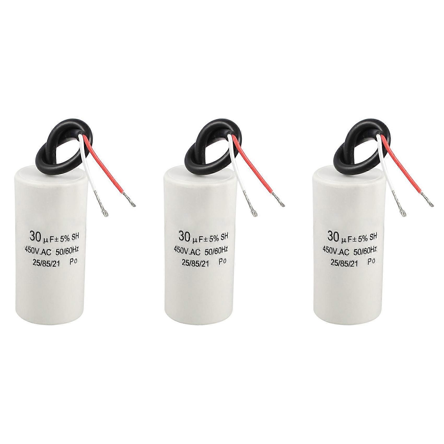 3X 2-Wired Cord 30uF 450VAC 50/60Hz CBB60 Motor Start Run Capacitor