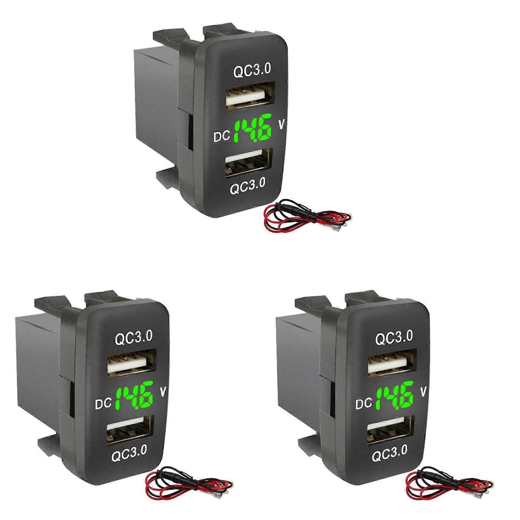 3X Car Dual USB3.0 Fast Charge with Display Voltmeter Black and Green Voltage Car Charger for Toyota