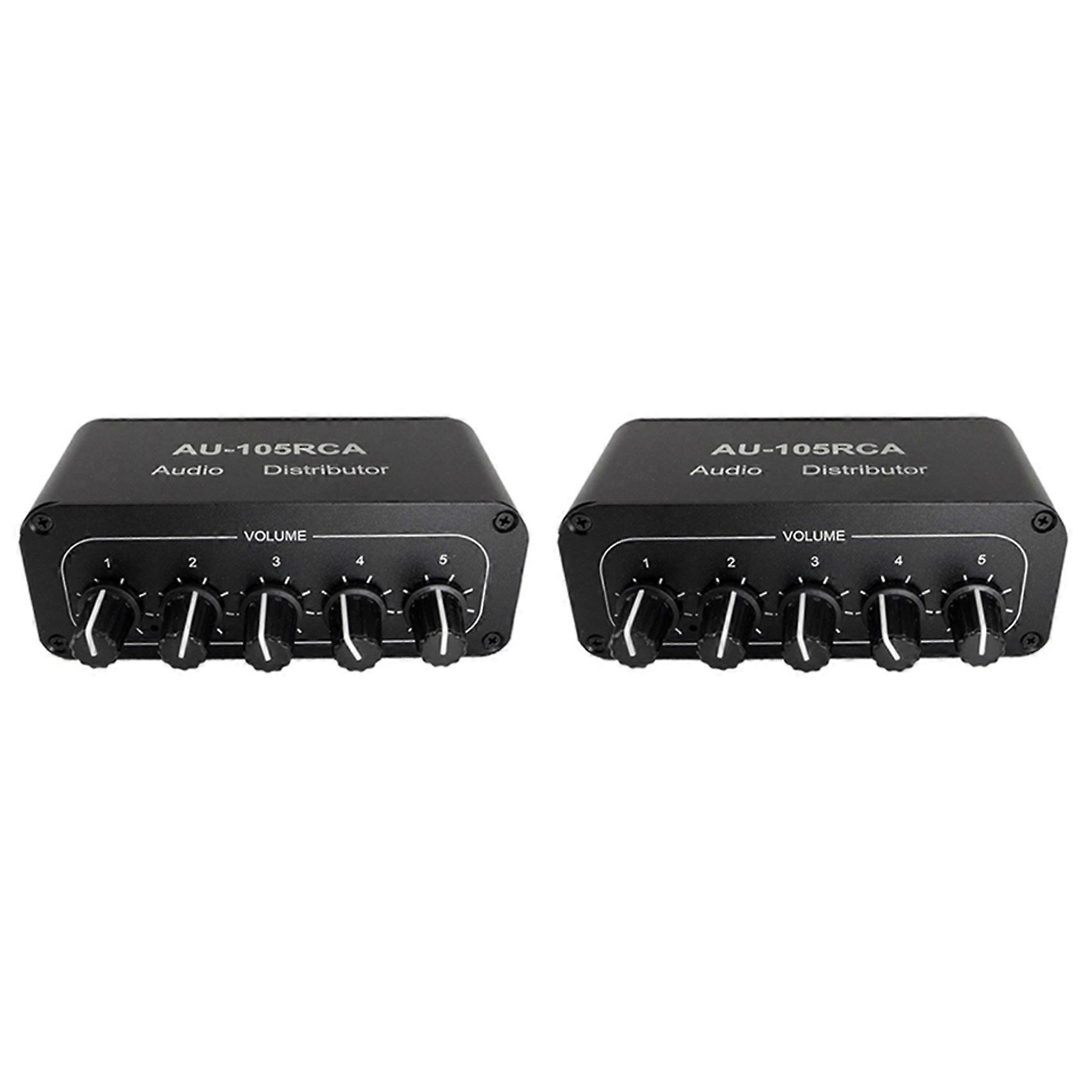 2X 5CH Audio Distributor Stereo Audio Mixer 1 Input 5 Output RCA Splitter for Power Amplifier Active Audio