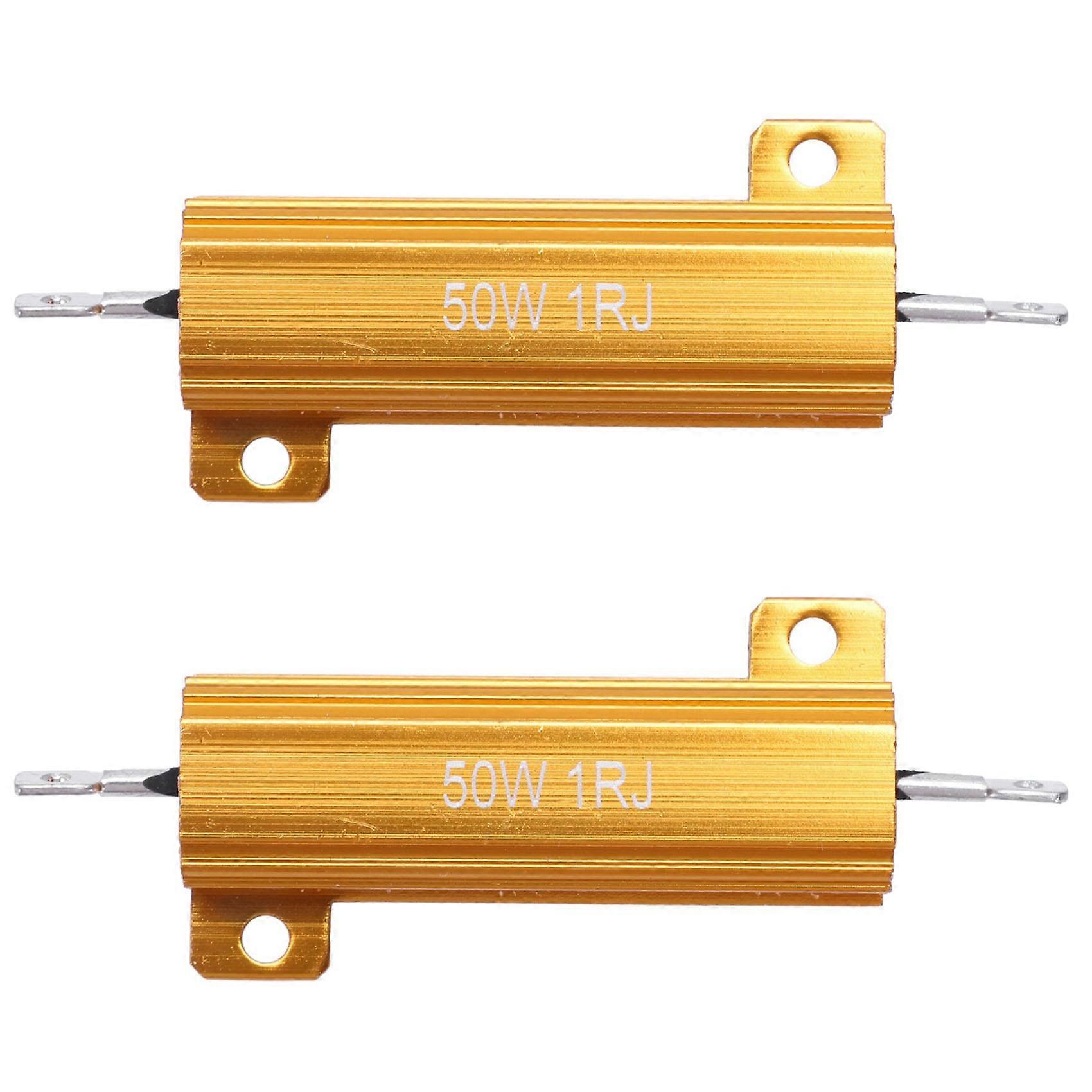 2X Gold Tone Screw Tab Wirewound Aluminium Resistor 1 Ohm 5% 50 Watt