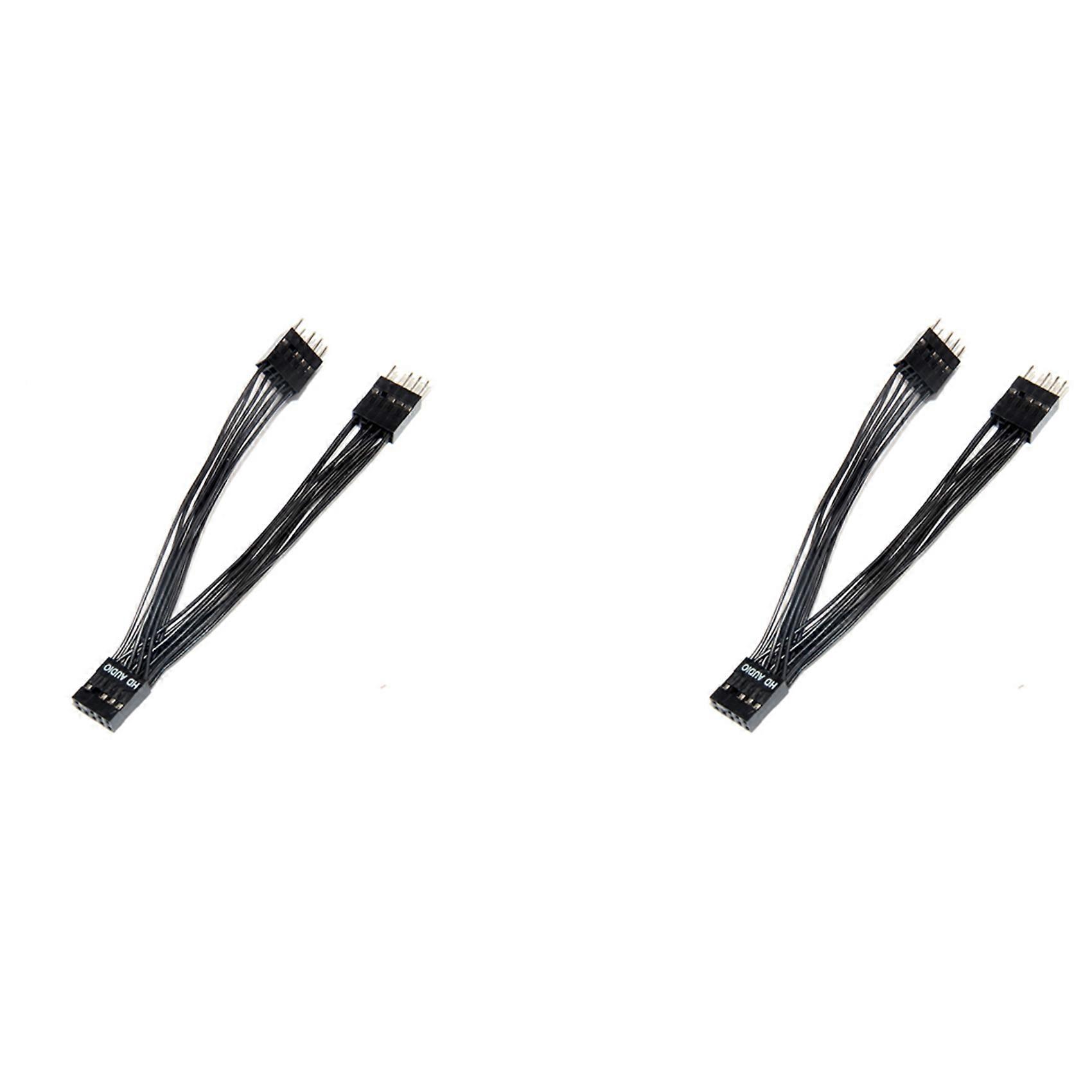 2X Motherboard Audio HD Extension Cable 9Pin 1 Female to 2 Male Y Splitter Cable Black for PC DIY 10cm