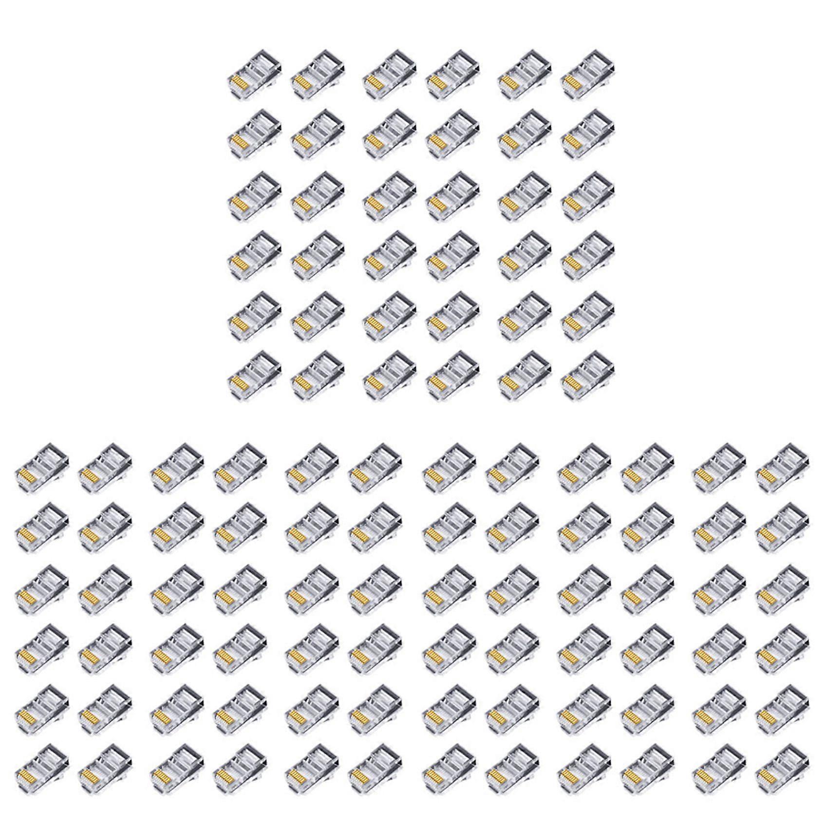 300Pcs RJ45 Connector 6U Gold Plated Pass Through Ethernet Cables Module Plug Network RJ-45 Crystal Heads Cat5 Cat5E