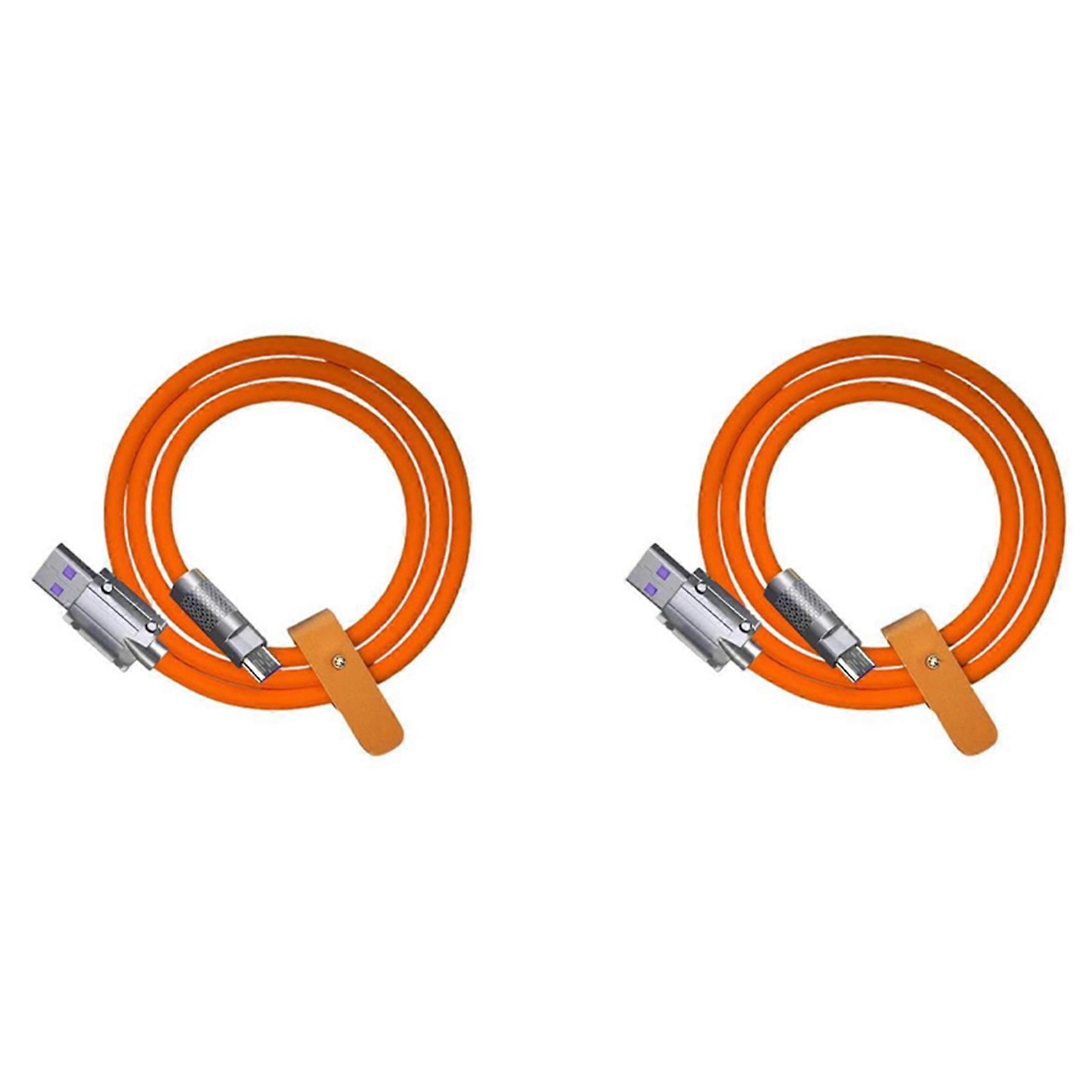 2X 120W 6A Super Fast Charge USB C Charging Cable USB Type-C Charging+Data Transfer 2-In-1 Mobile Phone Cable Orange(1M)