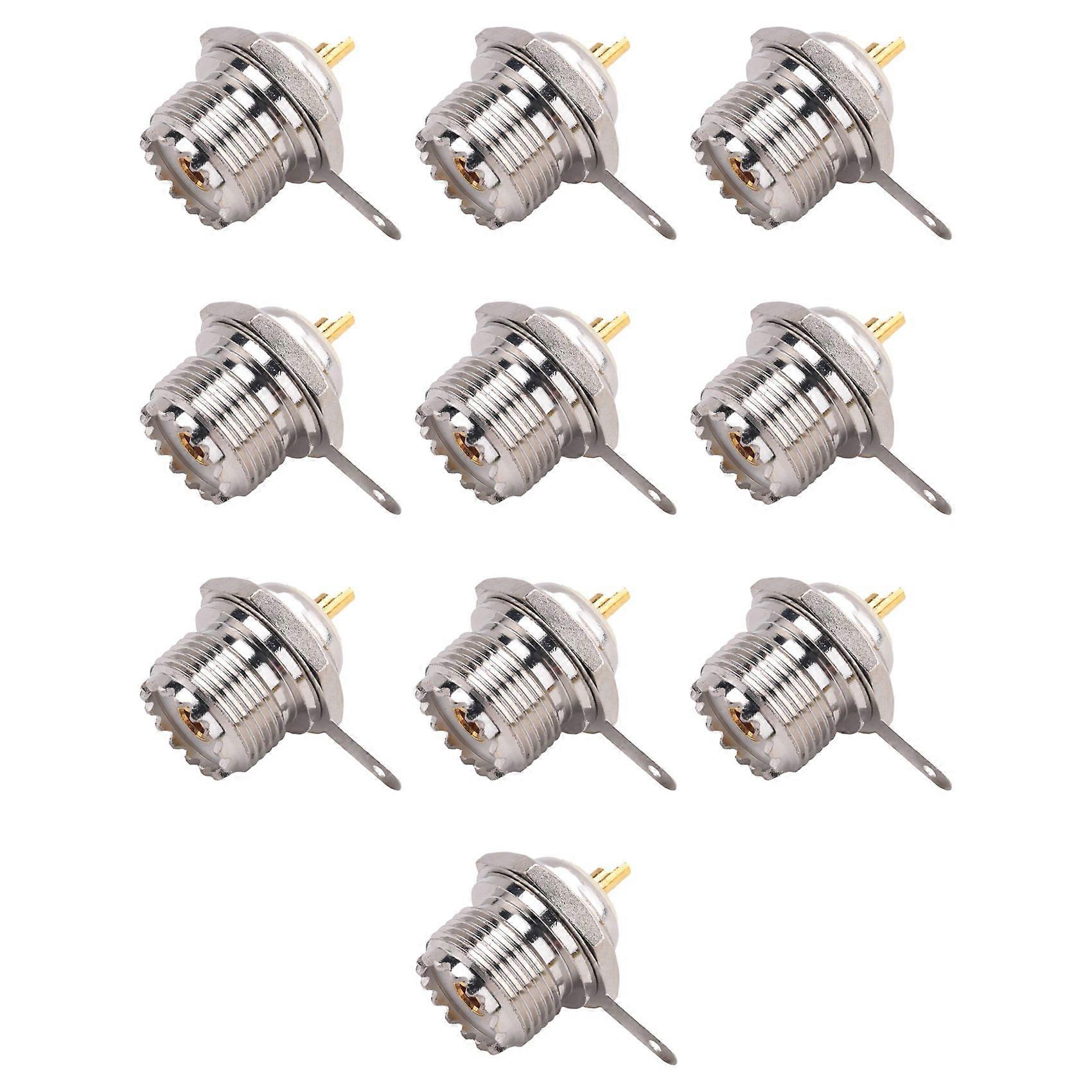10X UHF Female SO239 Jack Bulkhead Solder Panel Mount RF Straight Connector,Silver