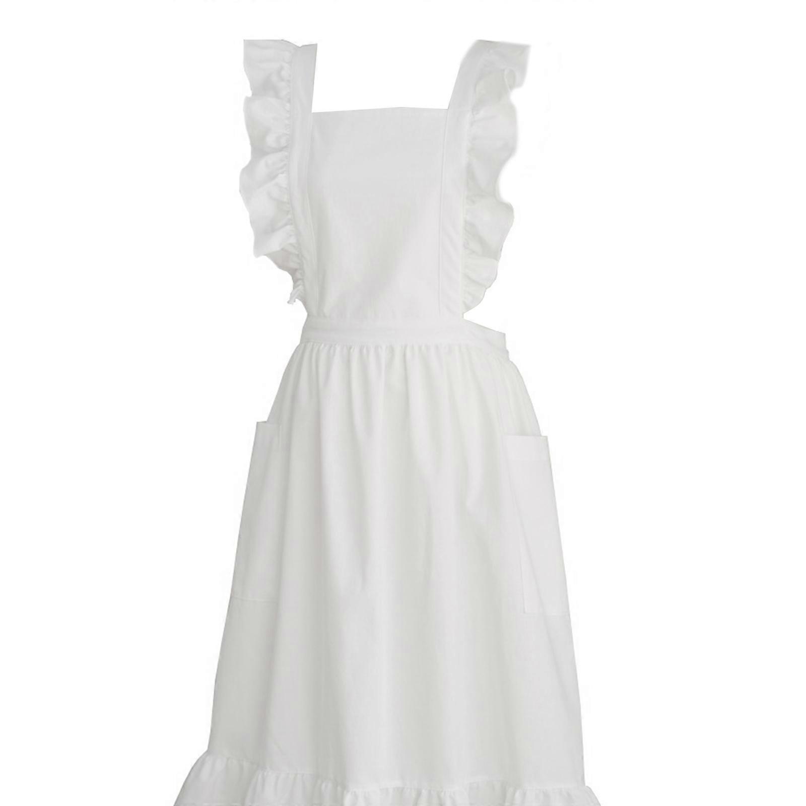 Cotton Linen Apron with Pocket Breathable Kitchen Baking Cooking Apron Ruffled Apron Plain Work Apron for Kitchen Cafe White