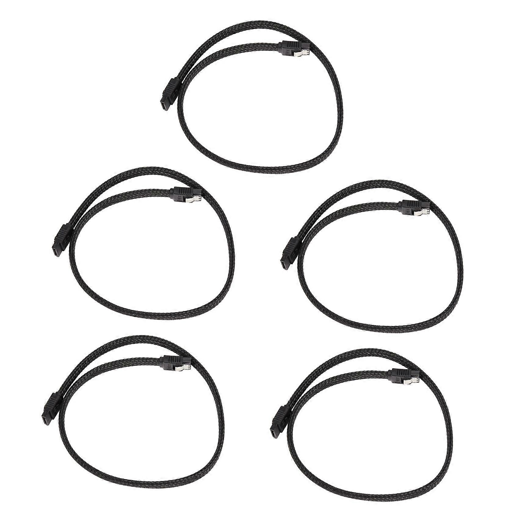 5pcs 50CM SATA 3.0 III SATA3 7Pin Data Cable 6Gb/S SSD Cables HDD Hard Disk Data Cord with Nylon Sleeved (Black)