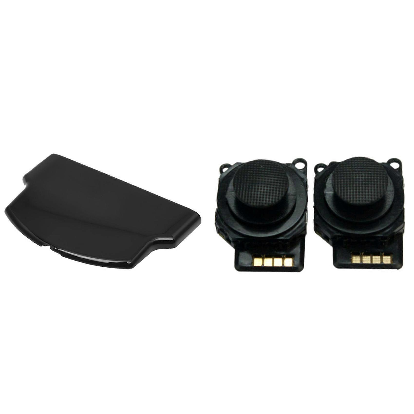 1 Pcs Black Battery Cover for Sony PSP 2000 3000 & 2Pcs Joystick Button Control Thumb 3D Analog Stick