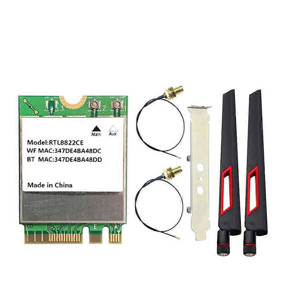 RTL8822CE WiFi Card 1200Mbps Dual Band 2.4G/5G Bluetooth 5.1 M.2 Interface with 10DBI Antennas for Windows 10/11