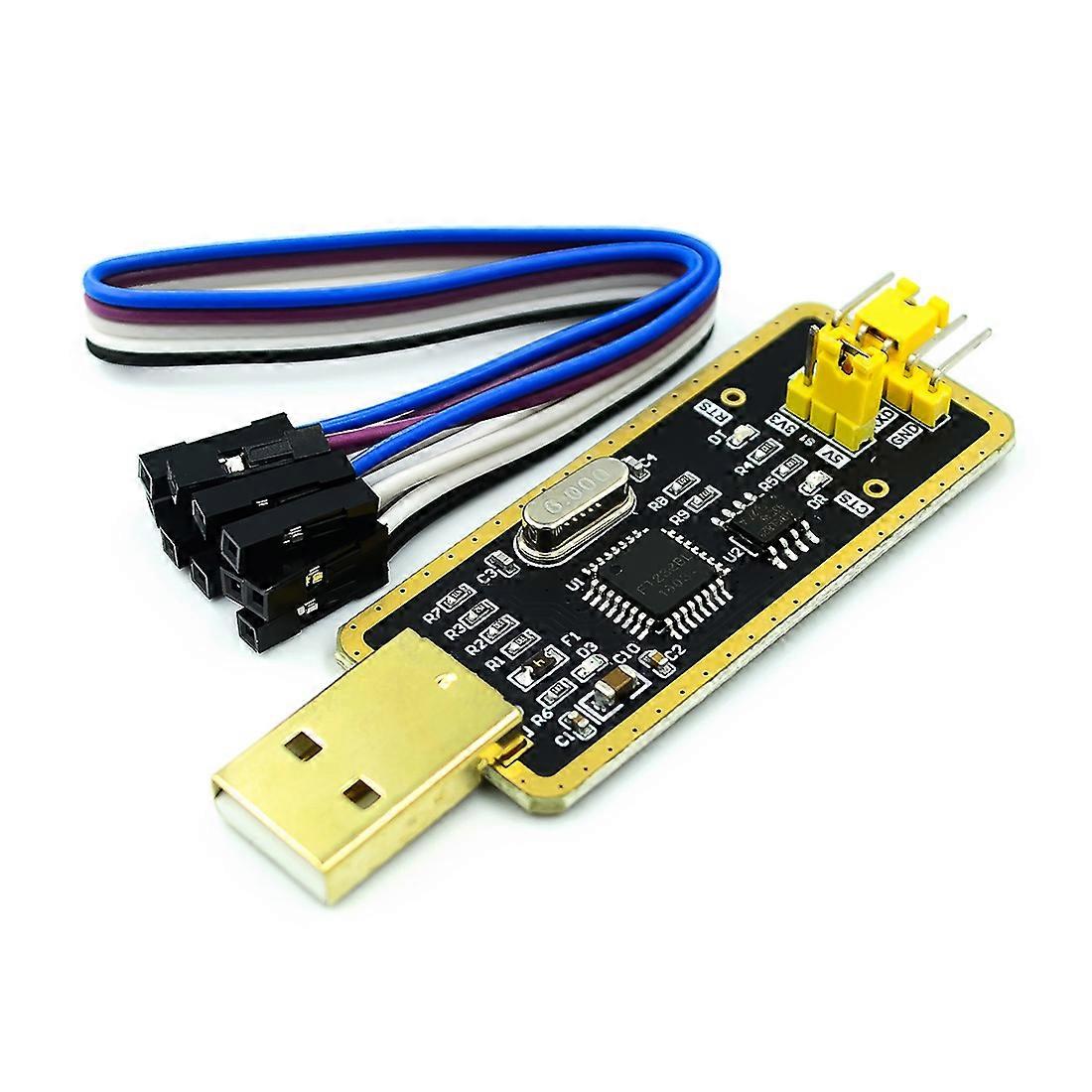 It works great for programming microcontrollers such for Arduino, boarduino, Bareduino, Raspberry Pi, ESP8266, Mini minimOSD, and Atmel Xmega Xplained, Atmega328 mini pro, or any other that can be programmed over serial After installing the driver,This FTDI TTL adapter will simulate a COM port on your computer/laptop. Through this simulated COM port, you can communicate or program with various hardware or MCUs, such for Arduino board, Raspberry Pi, ESP8266, router and so on. Main chip: FTDI FT232BL Pin Definition: CTS,RTS,RXD,TXD,GND,VCC Output VCC: 3.3V or 5V USB interface: 2.0 With 500MA self-recovery fuse reversed does protection The maximum speed: 921600bps List of supported systems Windows xp,7,8,10 Ubuntu 11.10, kernel 3.0.0-19 Mac OS X 10.3 to 10.8 (32 &64 bit) Mac OS X 10.9 and above(64 bit) Instructions for use:(Example MCU) GND: Connect to GND RXD: Connect to MCU.TX (Signal Flow: MCU.TX Greater than Greater than FT232 Greater than Greater than PC.RX) TXD: Connect to MCU.RX (Signal Flow: MCU.RX Less than Less than FT232 Less than Less than PC.TX) 3V3/5V: Output 3.3V or 5V (module powered by USB, jumper cap :to 3.3V or 5V) RTS: Connect to MCU.CTS (Signal Flow Direction: MCU.CTS Less than Less than FT232 Less than Less than PC.RTS) CTS: Connect to MCU.RTS (Signal Flow: MCU.RTS Greater than Greater than FT232 Greater than Greater than PC.CTS) Type:Voltage Regulator Operating Temperature:-40-+85 Application:Computer Package:DIY KIT Functions:Electronic Module Range of application:Switch And Sensor For Arduino STM color:Black+gold Material:PCB + electronic accessories Package Contents: 1 x FT232BL Module 1 x Dupont Line(Random color, don't accept the specified color)