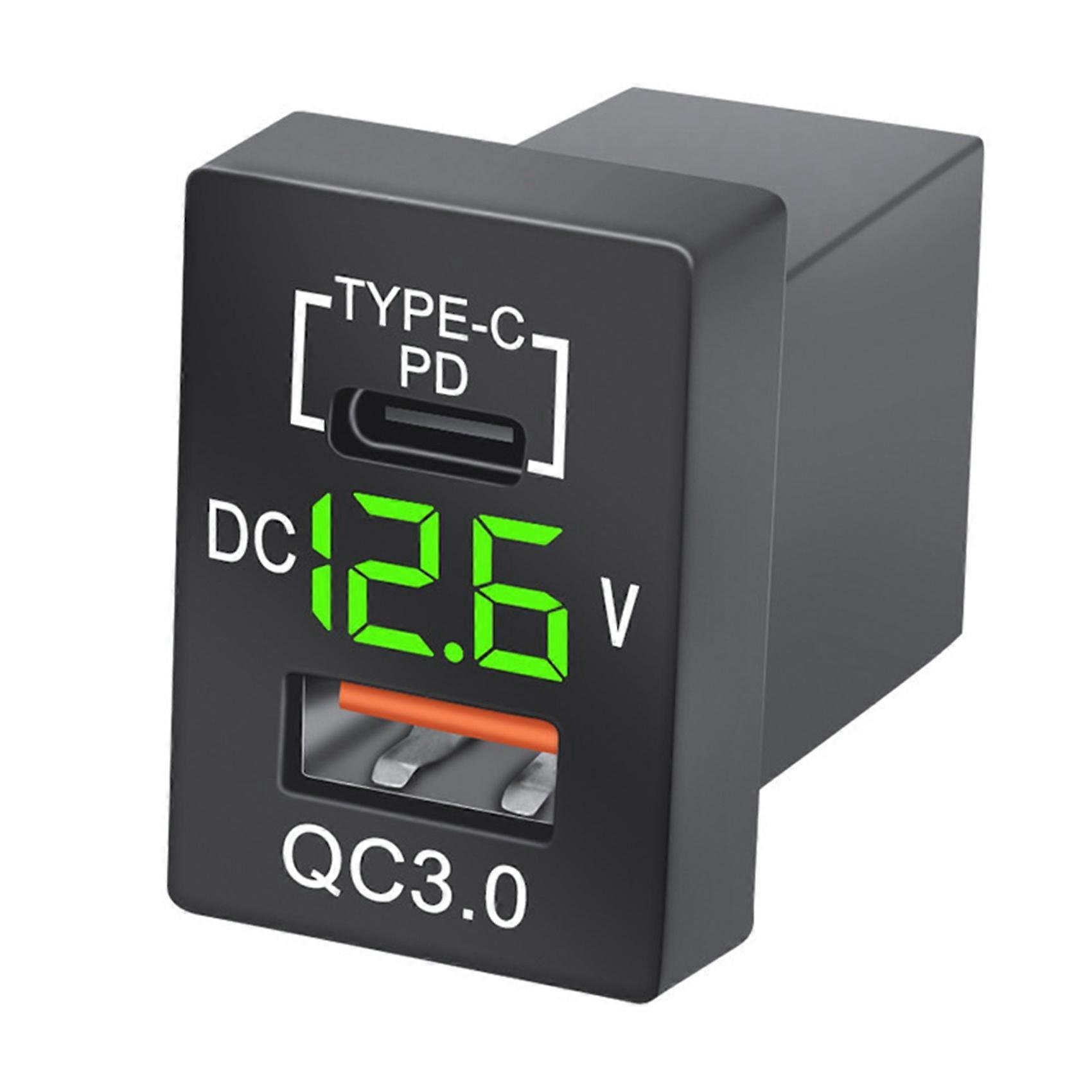 Charger QC3.0 USB Car Charger Socket PD Type-C Charger with LED Green Digital Voltmeter for Toyota Quick Charge