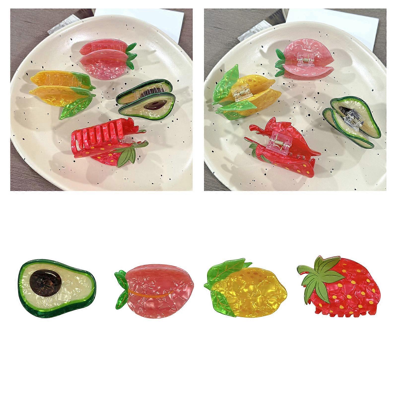 Colorful Acrylic Hair Claw Clip For Women Lovely Fruit Shape Hair Clamp Strong Ponytail Holder Hair Styling Accessories Multicolor