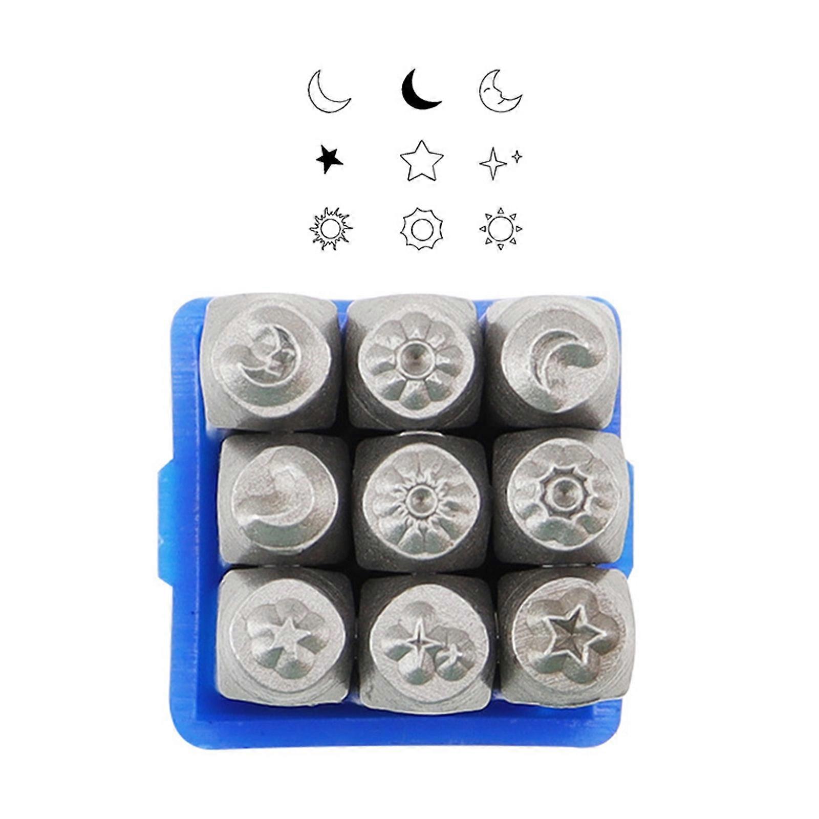 9 Pieces Metal Stamping Set Accessory for Jewelry Making and Customes Featuring Celestials Sun Moon Star Designs Multicolor