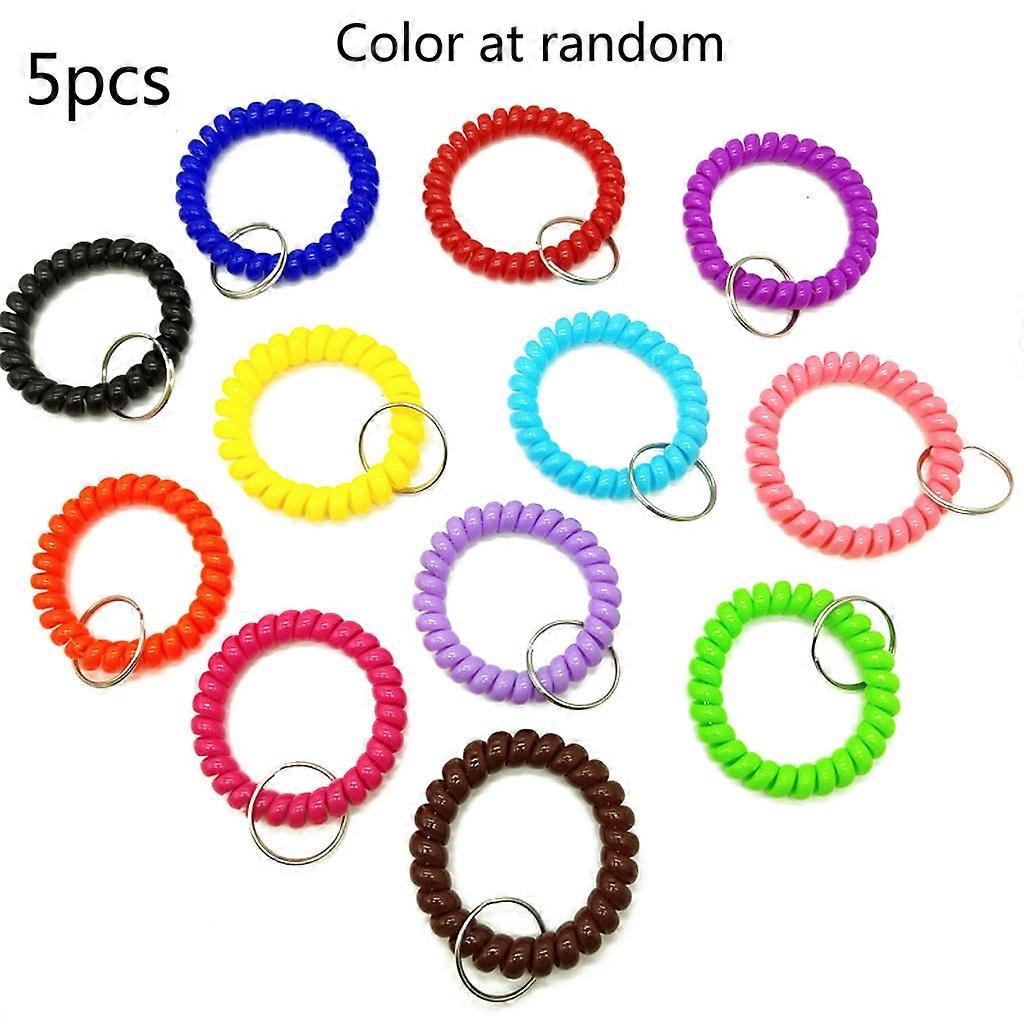 Pack of 5 Wrist Keychain Plastic Spring Flexible Spiral Wrist Coil Stretchable Wrist Band Wristlet Phone Cord Keychain Multi