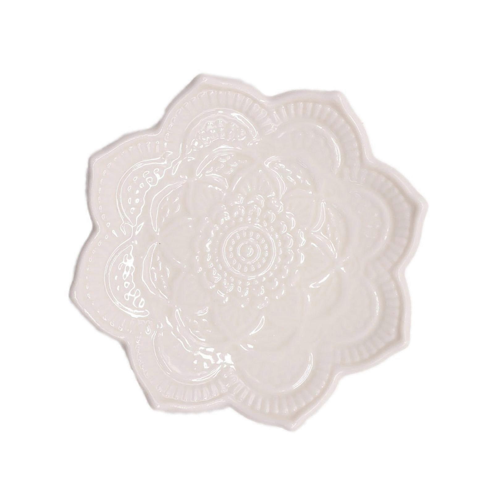 Fashionable Decorative Elegant Pattern Sturdy Ceramic Trinkets Dish Accessory for Rings Necklaces and Bracelets White