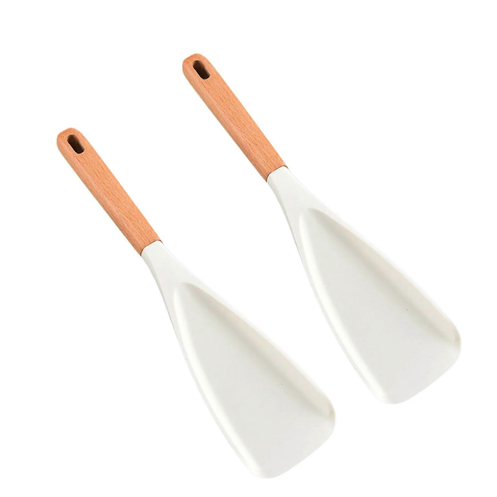 2Pcs Multipurpose Silicone Cooking Spoon Utensils with Wood Handle Heat Resistant Spatula for Stirring Flipping Serving White