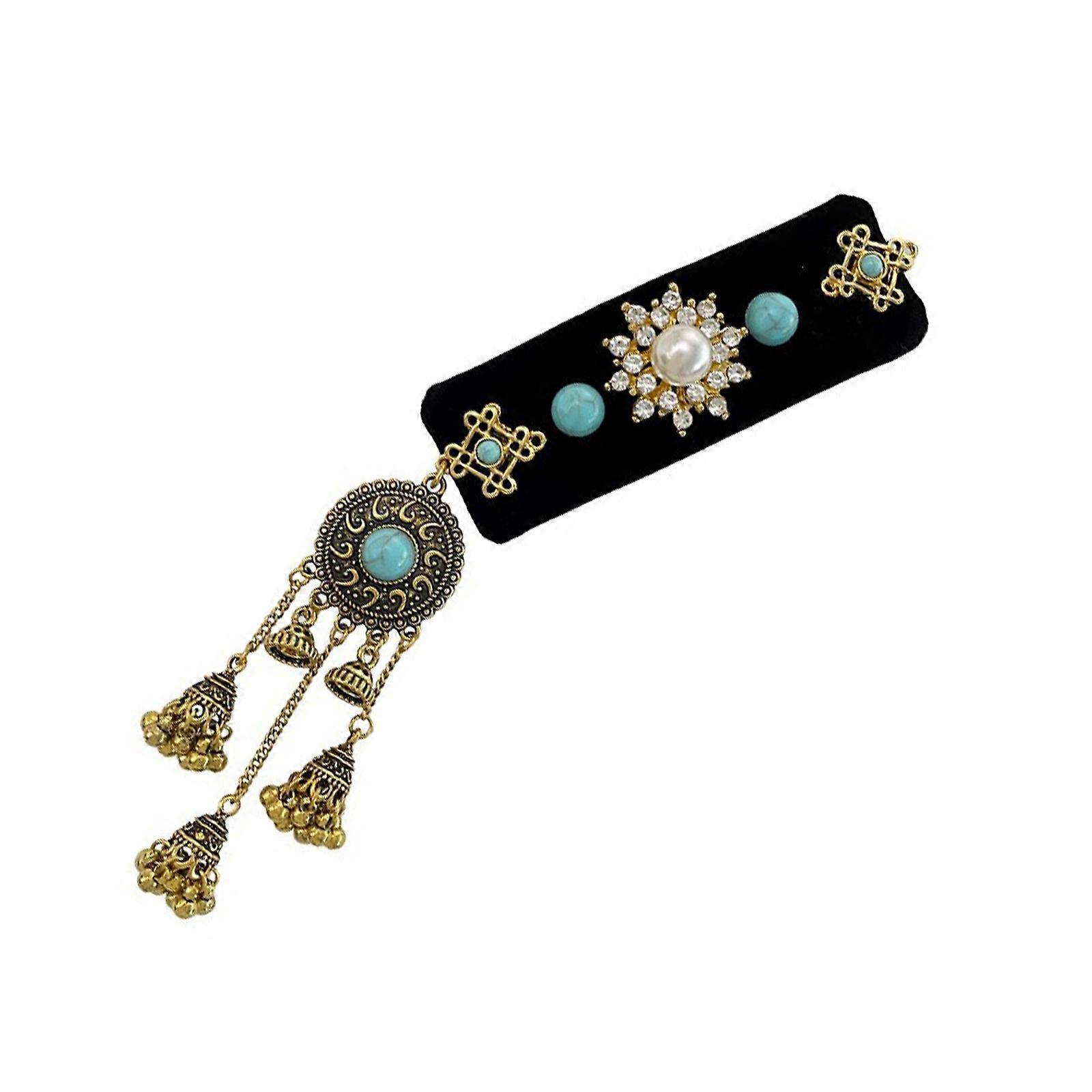 Black Velvets Hairpiece Turquoise and Tower Tassels Hairpin Ethnic Style Women Hair Clip Accessories for Everyday Wear Multicolor