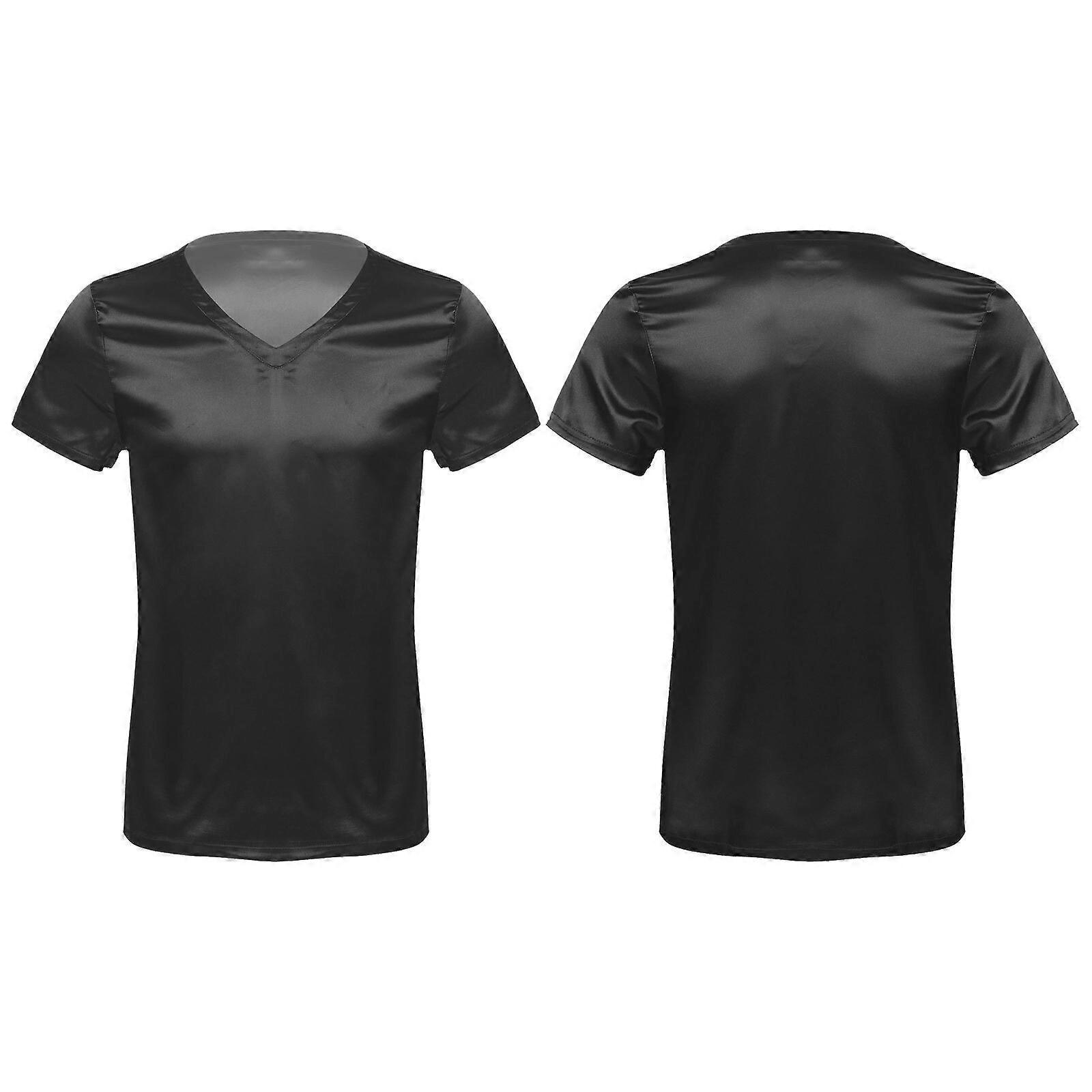 Men's T-Shirt Silk Satin Lounging Tops V-Neck Short Sleeve Smooth Soft Sleepwear