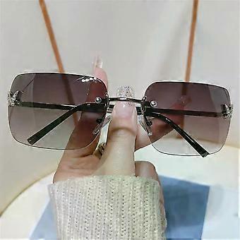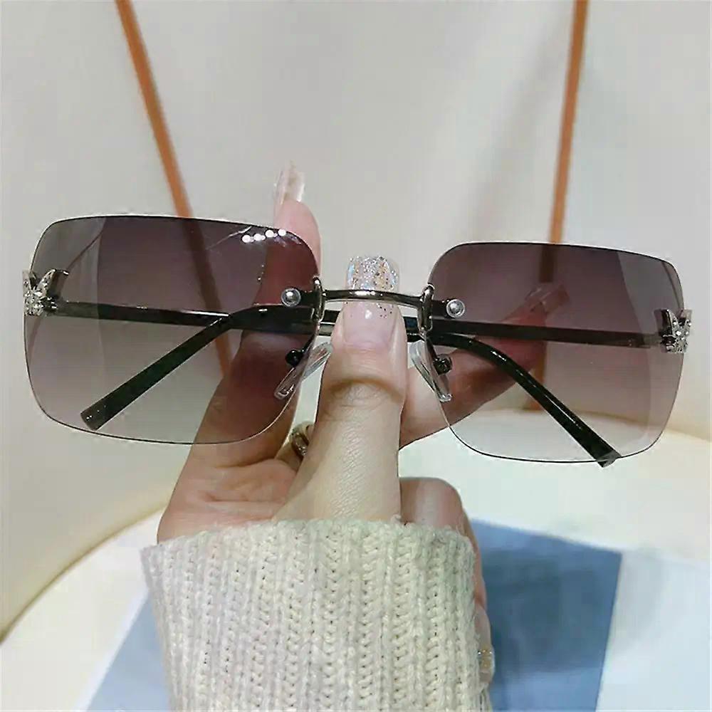 2023 Luxury Rhinestone Sunglasses for Women Y2K Retro Rimless Rectangle Sun Glasses Female Vintage Shades Travel Beach Eyewear