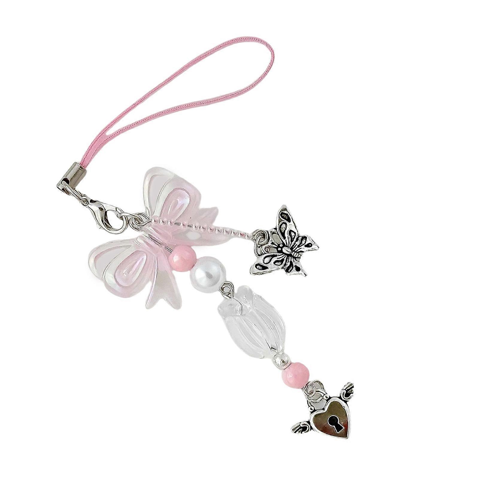 Tulips Beaded Phone Charm With Bowknot Elegant Tulips Keyring Elegant Beaded Phone Adornment For Adding Personal Flair Multicolor