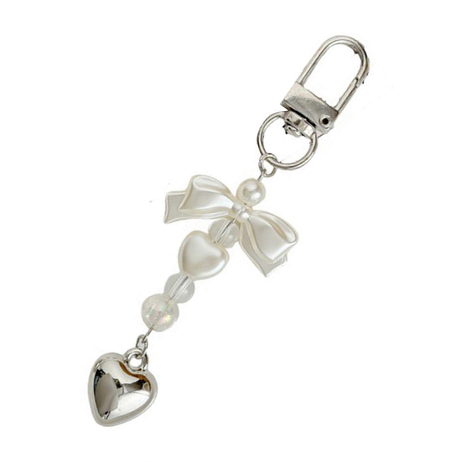 Stylish Bowknot And Heart Phone Chain Stylish Heart Bowknot Phone Lanyard Accessory Hanging Pendant For Bags Or Phones White
