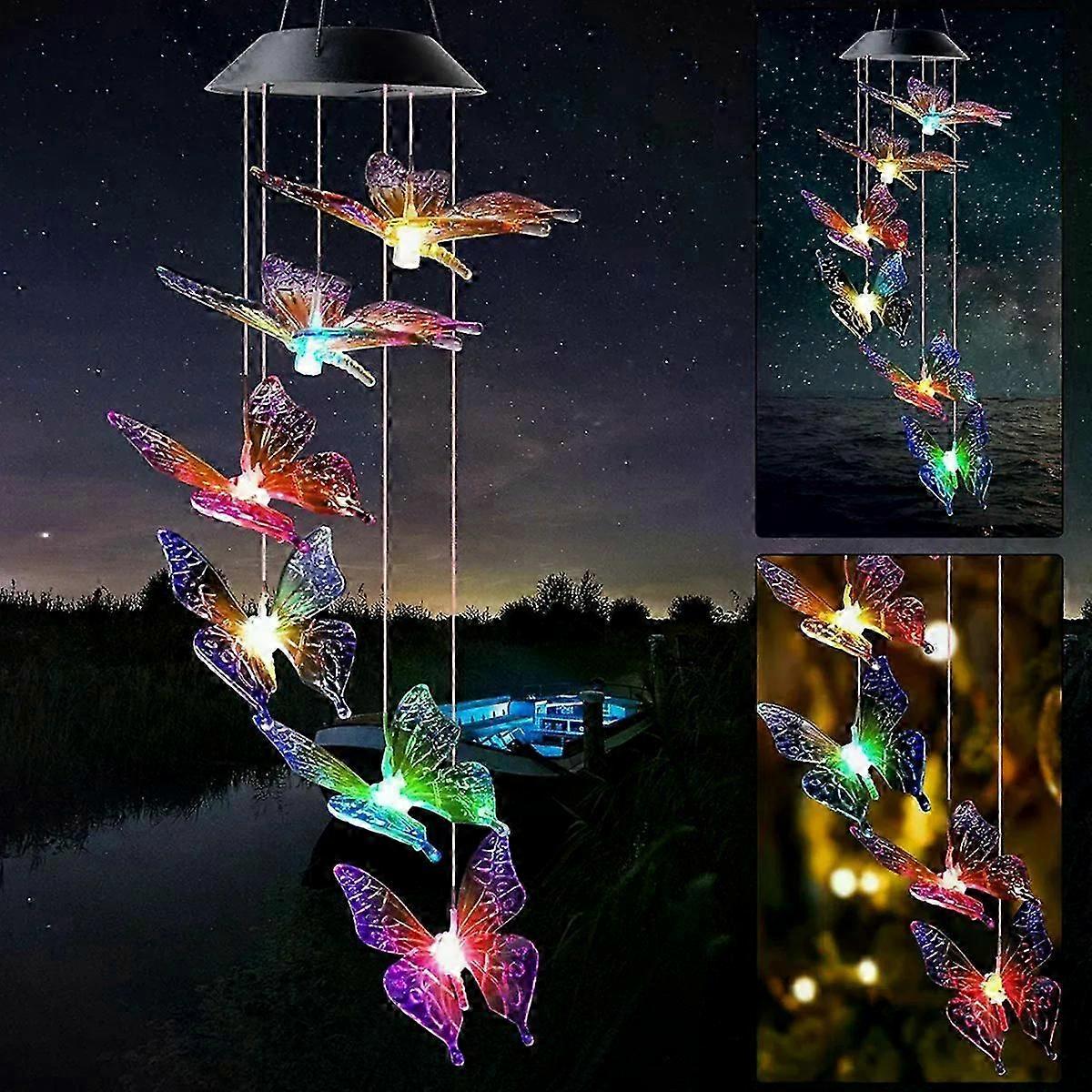 Butterfly Solar Wind Chime Light 120mah Multicolor Light Waterproof Chandelier With Bell For Garden Home Yard Lawn Decoration
