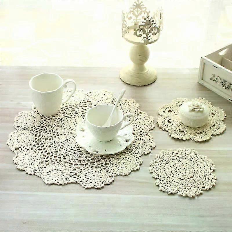 Round Hand Crocheted Doily Vintage Cotton Crochet Table Place Mat Wedding Napkins Cloth Lace Decorative Mantel Mesa