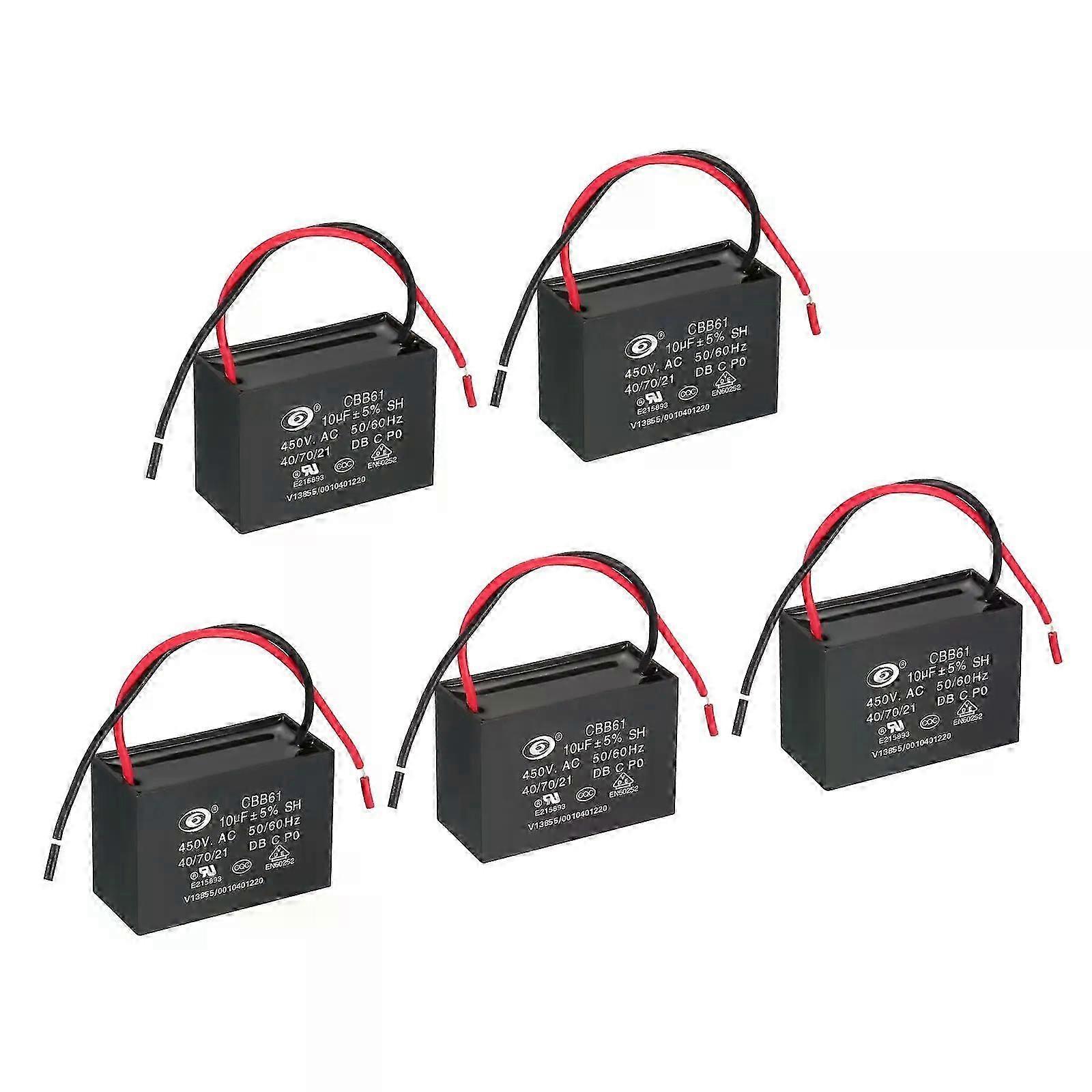 5/10pcs Ac 450v 047uf-10uf Cbb61 Ceiling Fan Capacitor 50/60hz With 2 Wires For Air Conditioner Fan Motor Star Run
