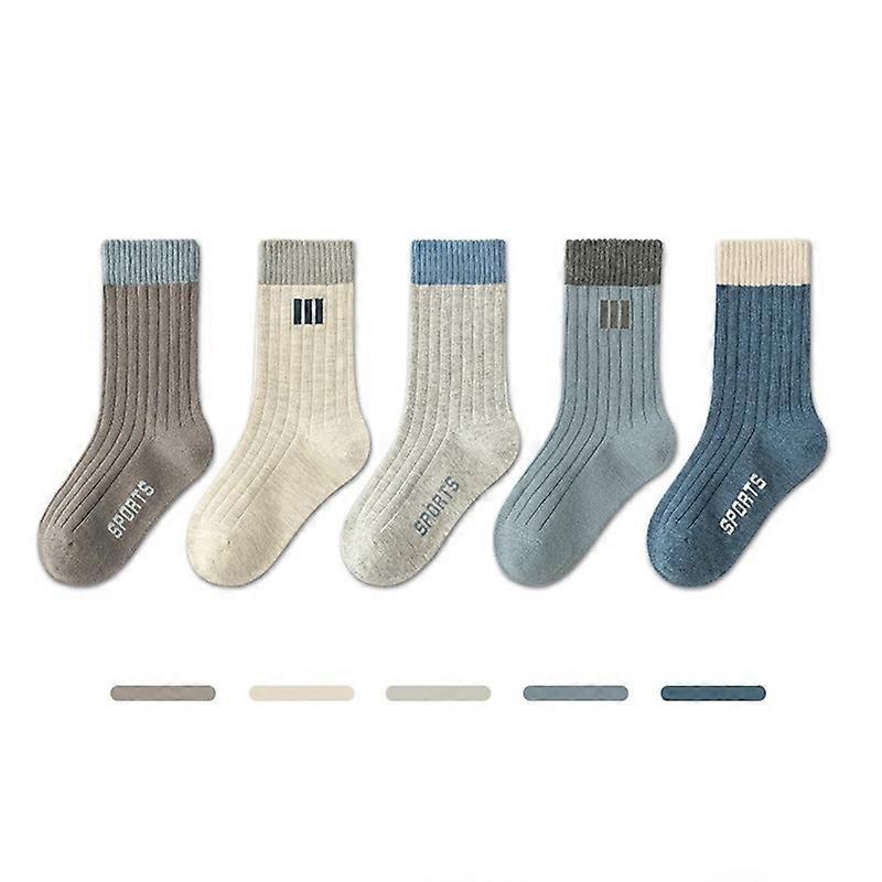 5 Pairs Children's Socks Autumn and Winter Boys' Socks Versatile Solid Color Striped Casual Socks for Students