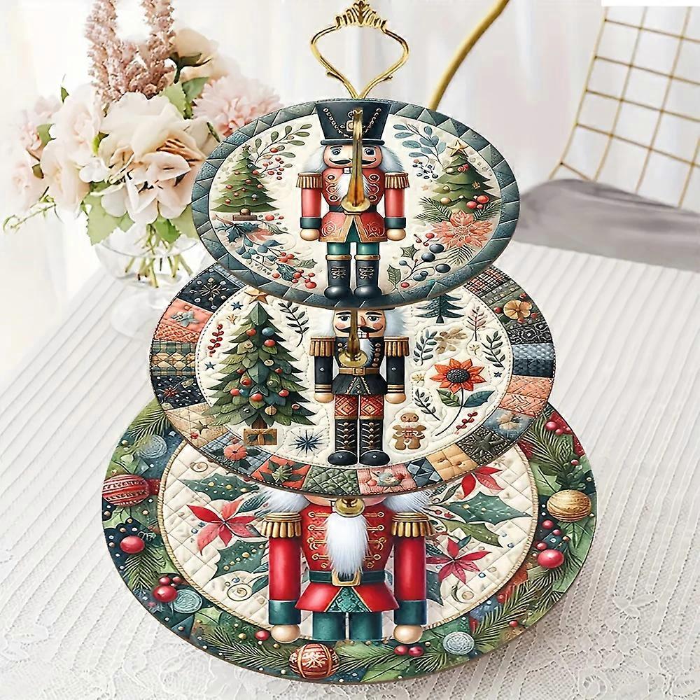 Christmas Nutcracker Tray 3-layer stackable decorative tray rack with Nutcracker soldier pattern elegant holiday desktop decorat