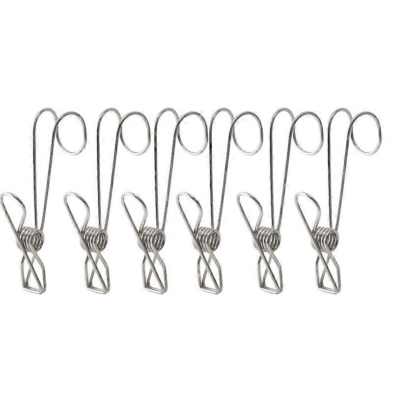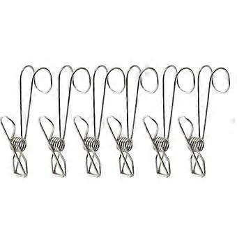 6/12 Pcs Stainless Steel Long Tail Clip with Hooks Metal Hanger Clips Clothes Pins for Hanging Outdoor Kitchen Office