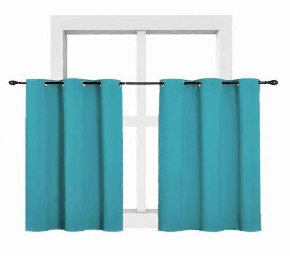 SAMIMPORT-2011 Kids Teal Solid Print Grommet Blackout Kitchen Tiered Curtains 28” x 36”