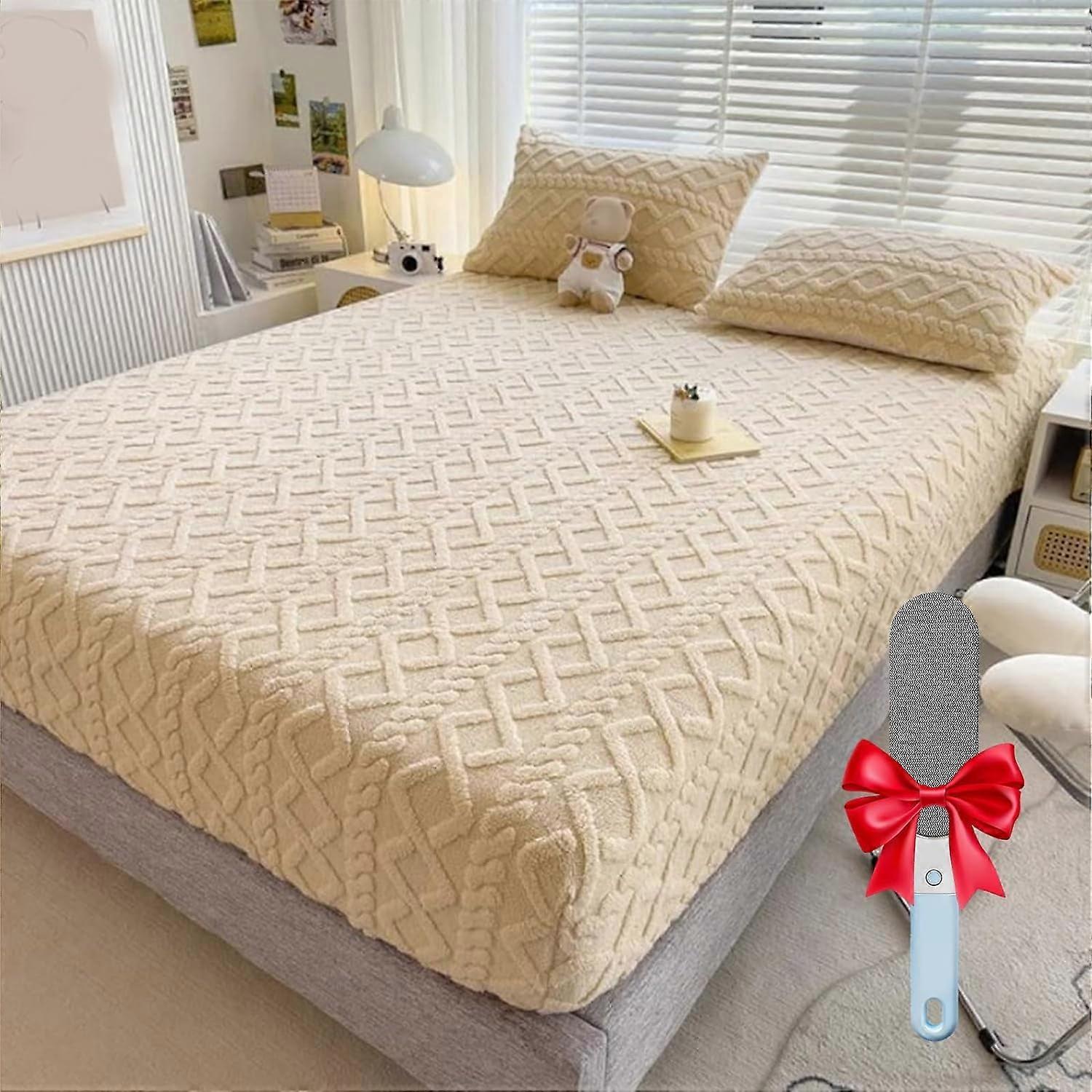 Luxury Velvet Mattress Cover Set, Breathable & Noiseless Pad Compatible with Twin (90x200cm), Khaki