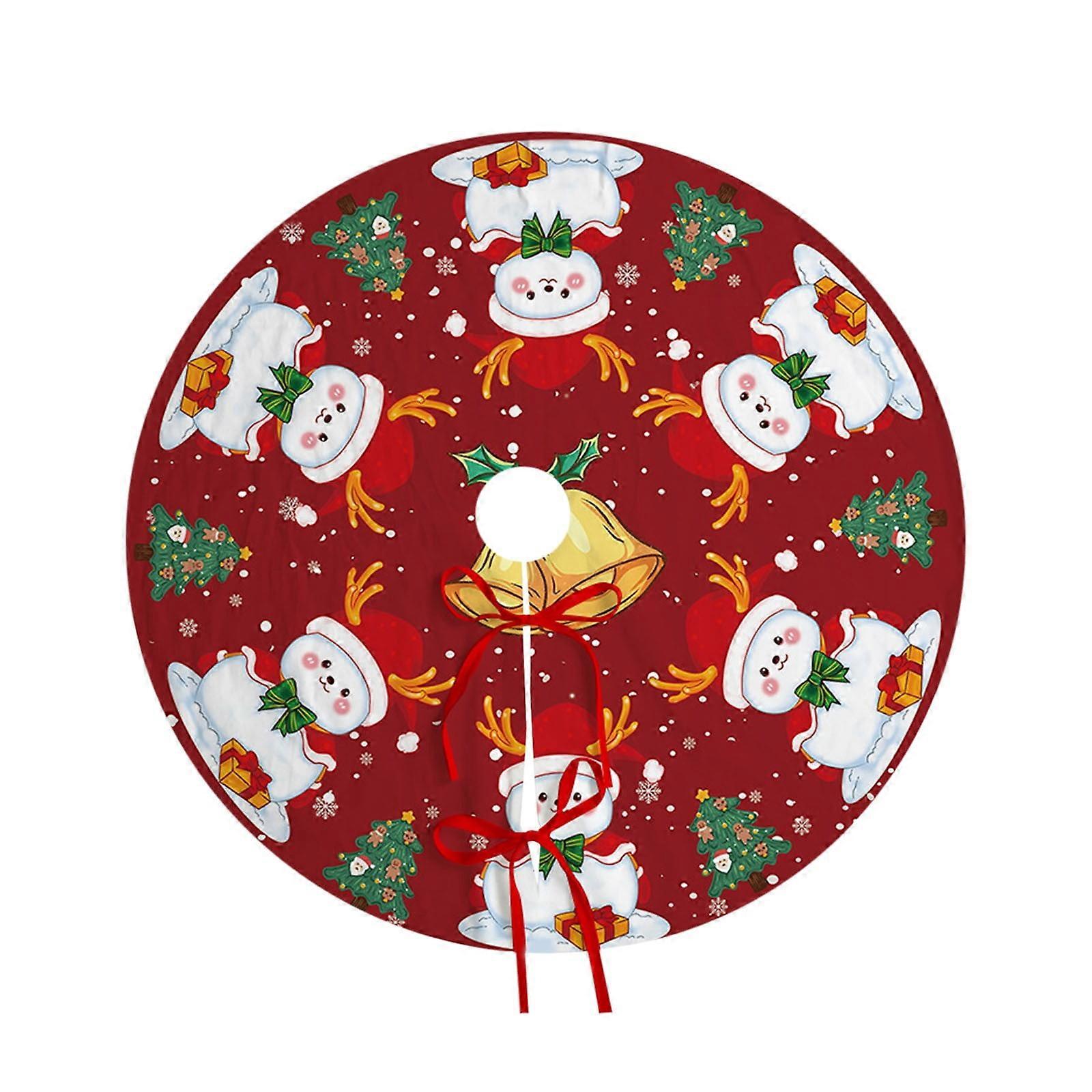 Avtoify Christmas Tree Decorations, Snowman Tree Skirt with Snowflakes, Red Winter Xmas Tree Mat for Home Party, Holiday Decor