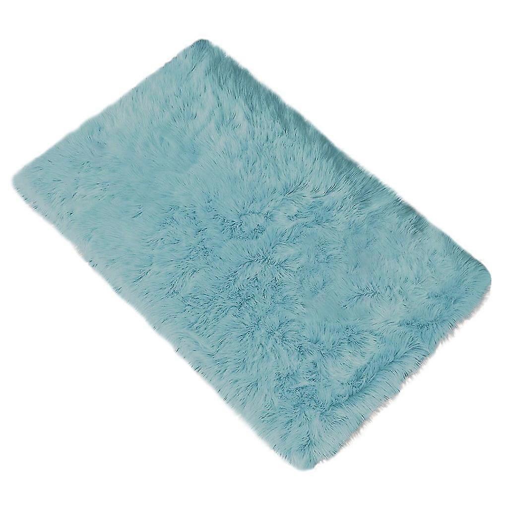 Begine Clearance Rectangular Imitation Wool Carpet 60*90 Light Blue,Wool Imitation Sheepskin Rugs Faux Non Slip Bedroom Shaggy Carpet Mats,1X Carpet
