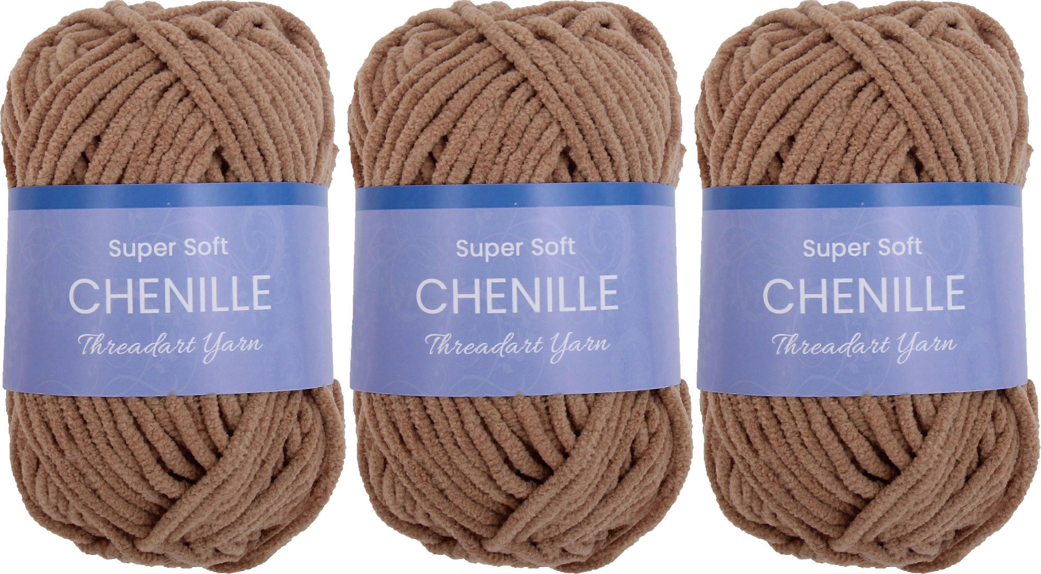 3 Pack ThreadArt Chenille Yarn for Crocheting, Knitting, Amigurumi, Super Soft Plush Velvet Yarn - 50 Gram 60 yds #5 Fluffy Yarn Skeins - Camel