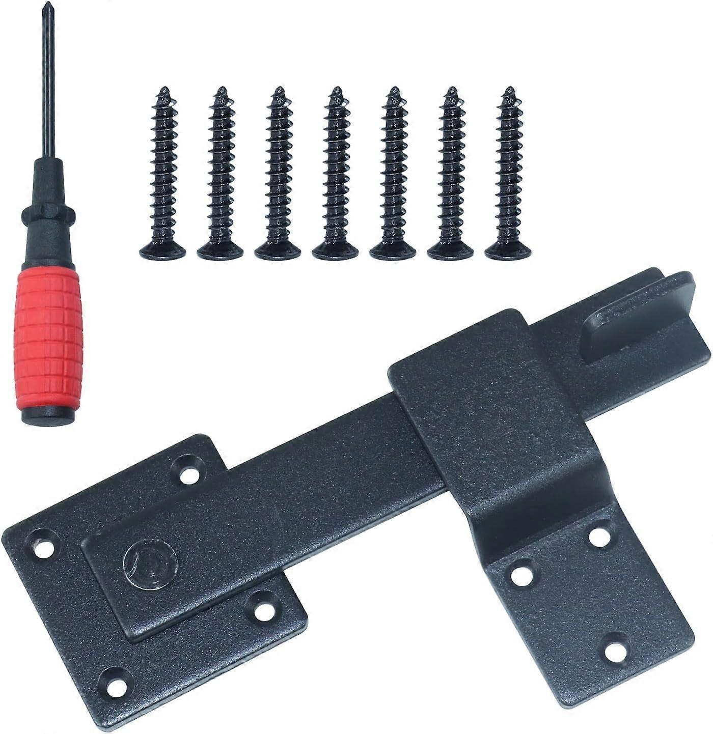 REVERSIBLE: This latch is 360 degree rotatable, allowing it to be mounted on either the left or right side, works great for interior and exterior applications, used for door reinforcementMATERIAL OF DOOR LATCH: Made of sturdy powder-coated forged steel with durable rivet and mounting plate, designed to offer simple but solid security for swinging gates and doorsMATERIAL OF SCREWDRIVER: A quality screwdriver is provided for you to assemble this door latch more easily and conveniently; Screwdriver Specification: magnetized flat head, 2 inch 45# steel forged rod part with high hardness and durability, anti-slippery handleEASY TO INSTALL: This door Latch hardware kit comes with all mounting hardware and screws, fasten the mounting hardware with the screwsFUNCTION AND APPLICATION: This flip gate latch lock protects personal privacy, prevent strangers from breaking in, and prevents pets or toddlers from opening the door by accident; Fits for garage door, sliding door, barn door, chicken coop door, stable, animal pens, shed, warehouse, backyard gate, fence gate, wooden cabinet hook door, etc