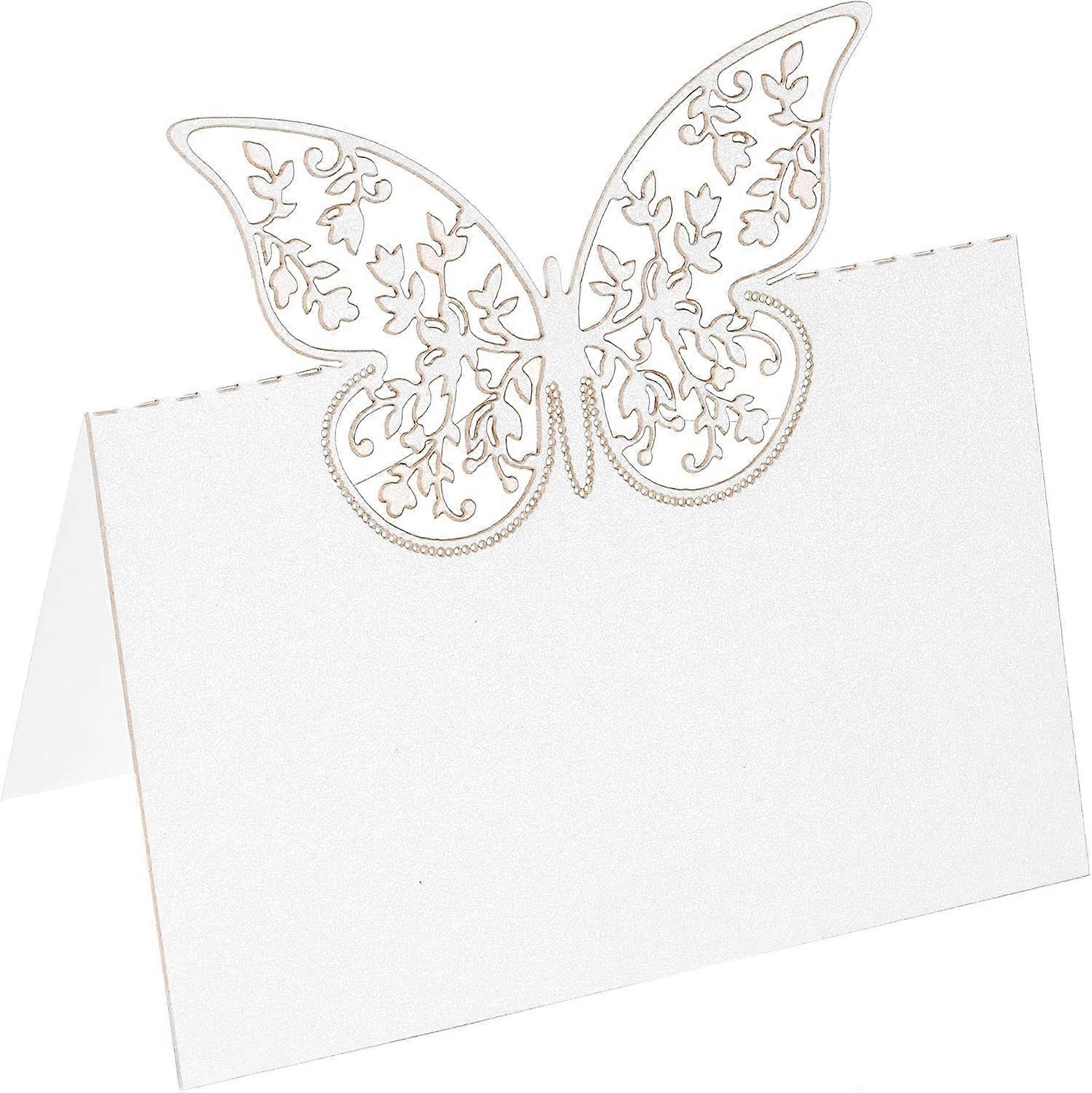 Table Name Place Cards, 25Pcs Favor Decor Hollow Butterfly Cut Design Blank Card for Wedding Party Seating Place Cards, White White