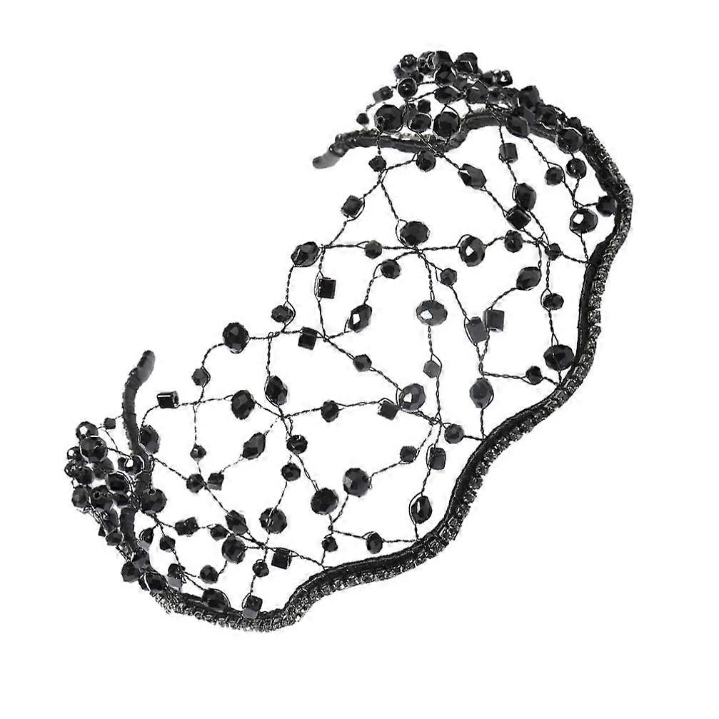 Bridal Headpiece Wedding Headband Rhinestone Mesh Headband Cap Headpiece Bridal Dance Party Hair Accessories for Women Black Wedding Decor Black 1