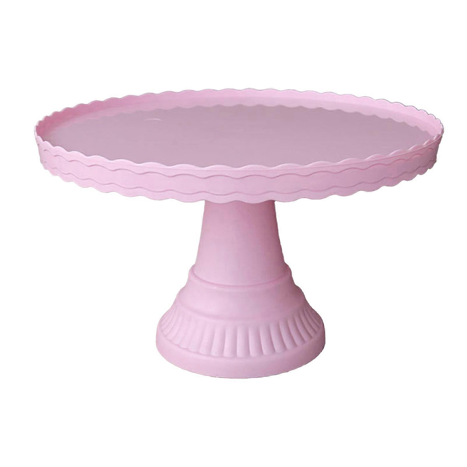 Cake Stand Stable Non-slip Plastic Wave Design Dessert Display Plate for Wedding-Pink